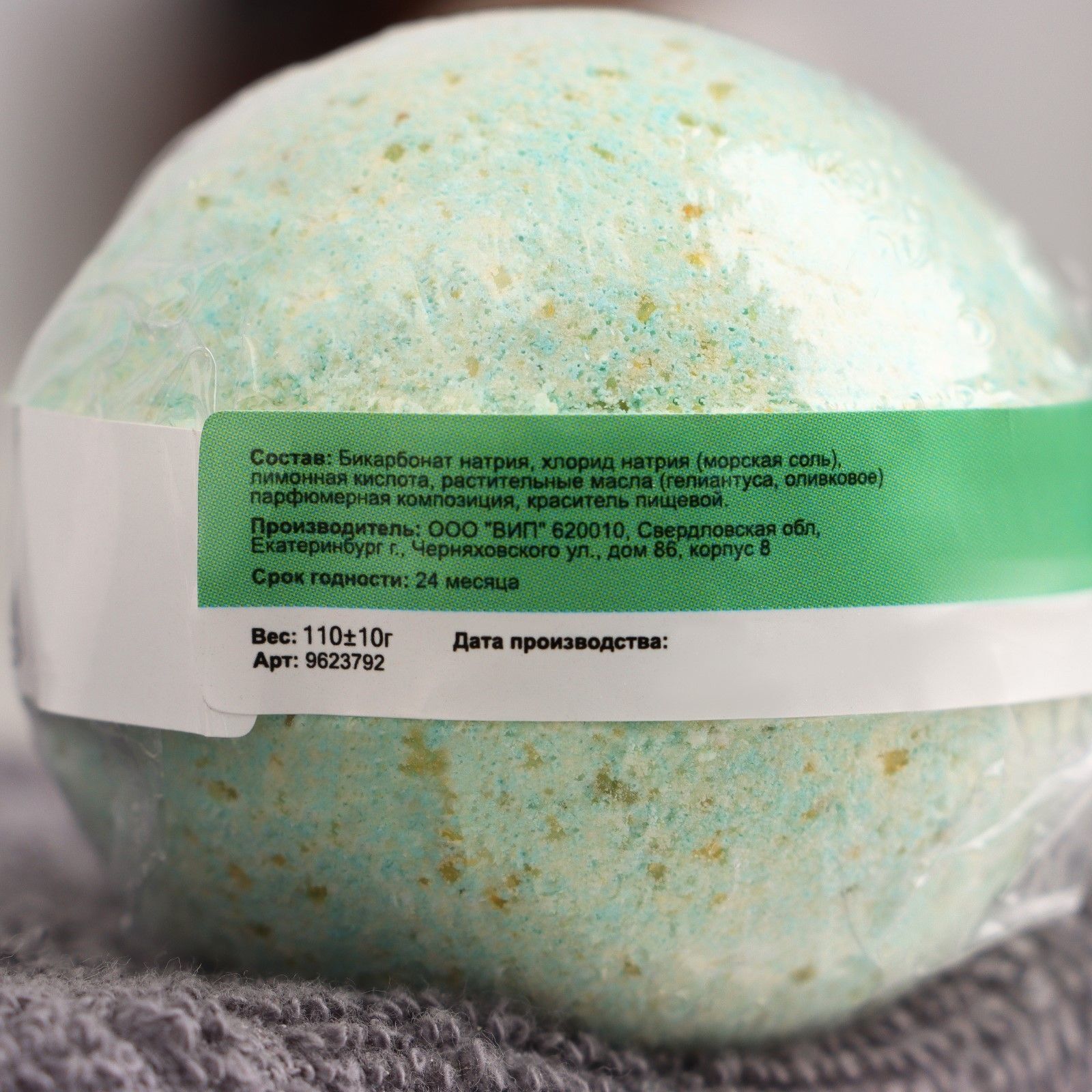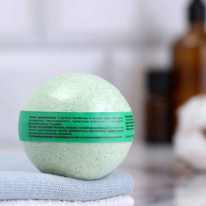 Объем бомбочки составляет 130 гр, что делает её идеальной для одной процедуры. Она имеет округлую форму и светло-зеленый цвет, что добавляет эстетики в ваш ритуал ухода. Бомбочка изготовлена из натуральных ингредиентов, включая бикарбонат натрия и растительные масла, что делает её безопасной для кожи.