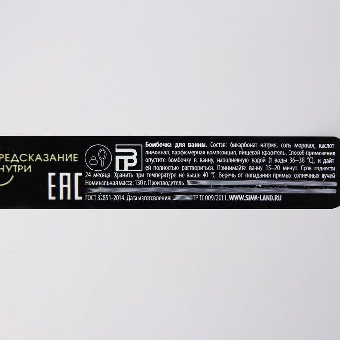 Вес бомбочки составляет 130 г, что делает её компактной и удобной для хранения. Упаковка оформлена стильно и привлекательно, что добавляет эстетики в ваш интерьер. Храните бомбочку в сухом месте при температуре не выше 40 °C и бережно относитесь к ней, чтобы она сохранила свои свойства на протяжении 24 месяцев.