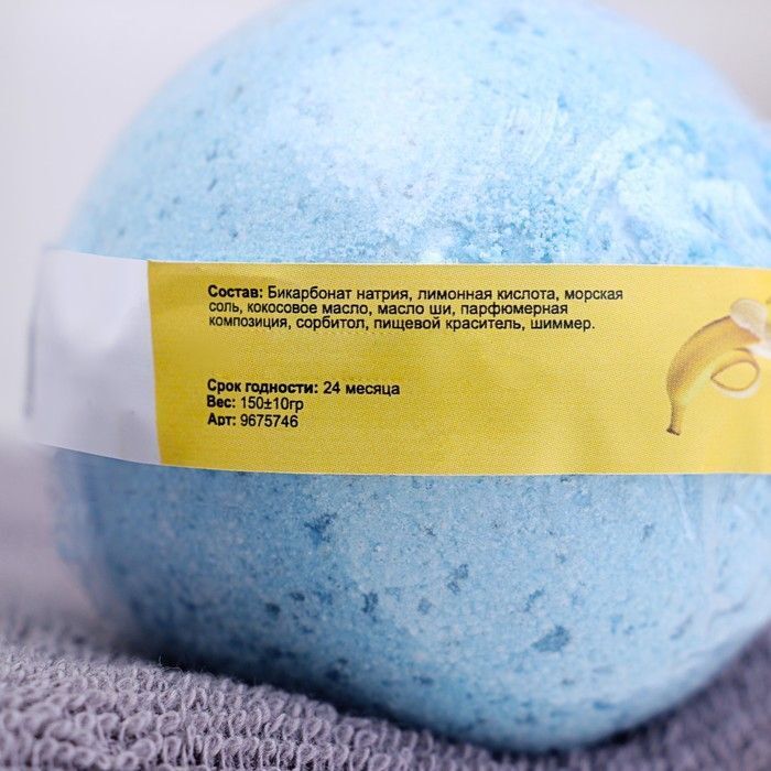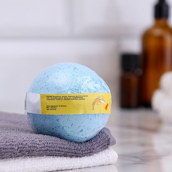 Объем бомбочки составляет 150 гр, что достаточно для одной полноценной ванны. Цвет бомбочки — голубой, а ее текстурированная поверхность добавляет эстетического удовольствия. Изготовлена в России, она станет отличным дополнением к вашему ритуалу ухода за собой.
