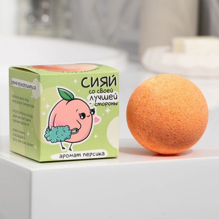 Объём бомбочки составляет 120 г, что делает её идеальной для одной процедуры. Упаковка выполнена в ярком дизайне с изображением персика, что добавляет визуальную привлекательность. Храните бомбочку при температуре не выше 40 °C и бережно относитесь к ней, чтобы она сохранила свои свойства. Срок годности составляет 24 месяца, что позволяет вам наслаждаться ею долгое время.