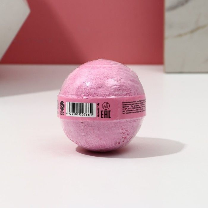 Бомбочка имеет розовый цвет и гладкую округлую форму, что делает её не только приятной на ощупь, но и визуально привлекательной. Храните бомбочку в сухом месте, вдали от прямых солнечных лучей, и наслаждайтесь её эффектом в течение 24 месяцев с момента покупки.