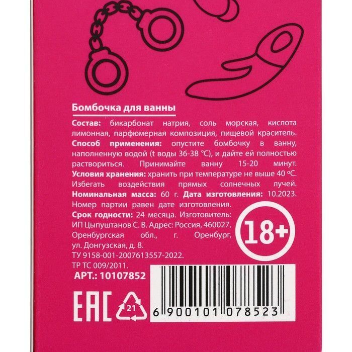 Эта необычная бомбочка для ванны с соблазнительной формой и ароматом бабл-гам создана для тех, кто ценит юмор и романтику. Она превратит обычное купание в захватывающее приключение.