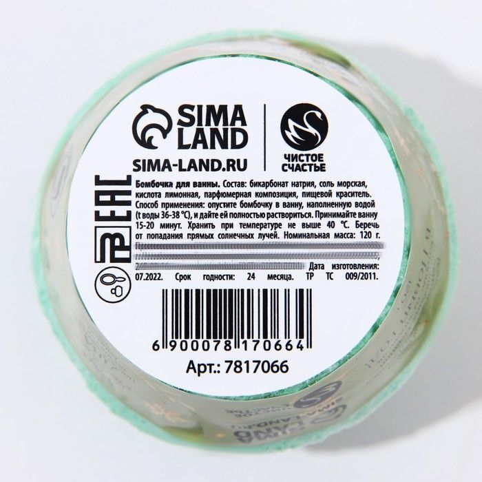Объём бомбочки составляет 120 г, а её яркий зеленый цвет и форма кекса делают её не только полезной, но и красивой. Храните бомбочку в сухом месте, вдали от прямых солнечных лучей, чтобы она сохраняла свои свойства как можно дольше. Срок годности — 24 месяца с момента изготовления.