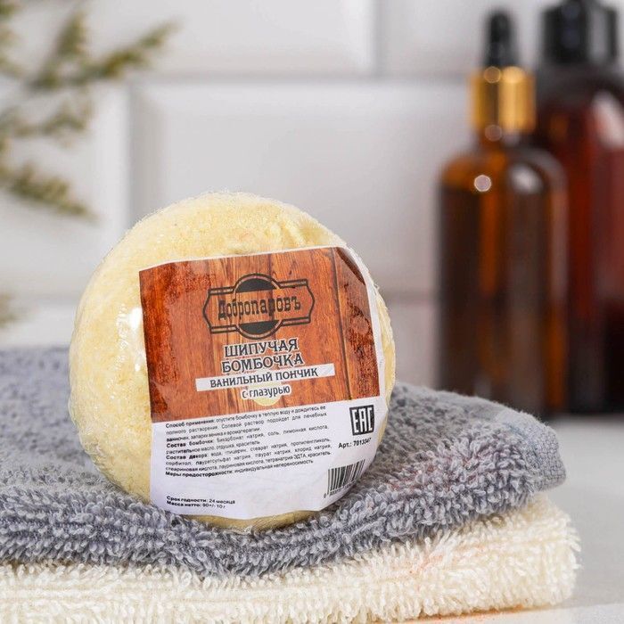 Бомбочка для ванны 'Ванильный пончик' — это не просто косметический продукт, а настоящий ритуал для вашего тела и души. Она создана для того, чтобы подарить вам мгновения спокойствия и уюта, а также улучшить состояние вашей кожи. Благодаря уникальному составу, эта бомбочка смягчает и увлажняет кожу, избавляя от сухости и придавая ей эластичность.