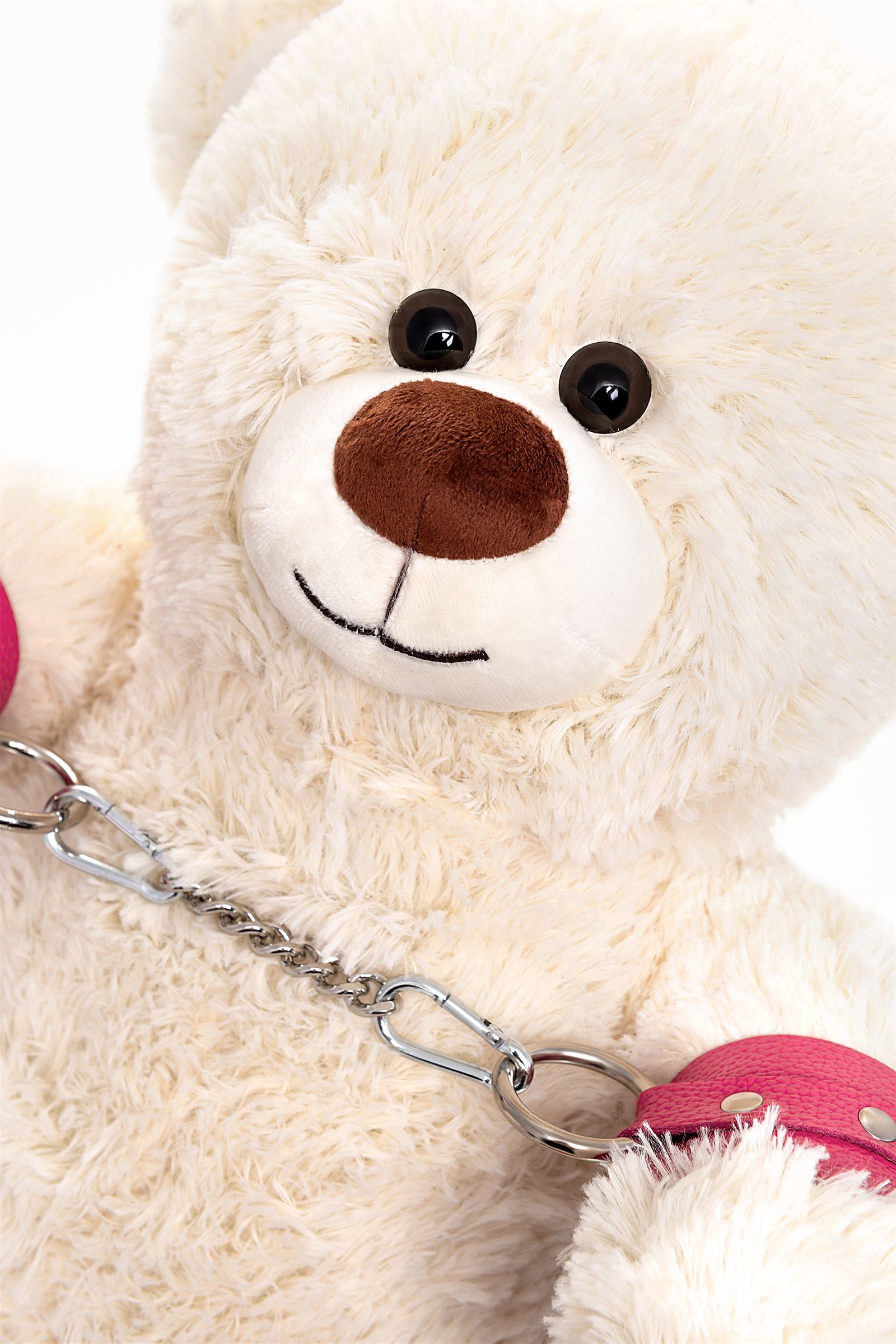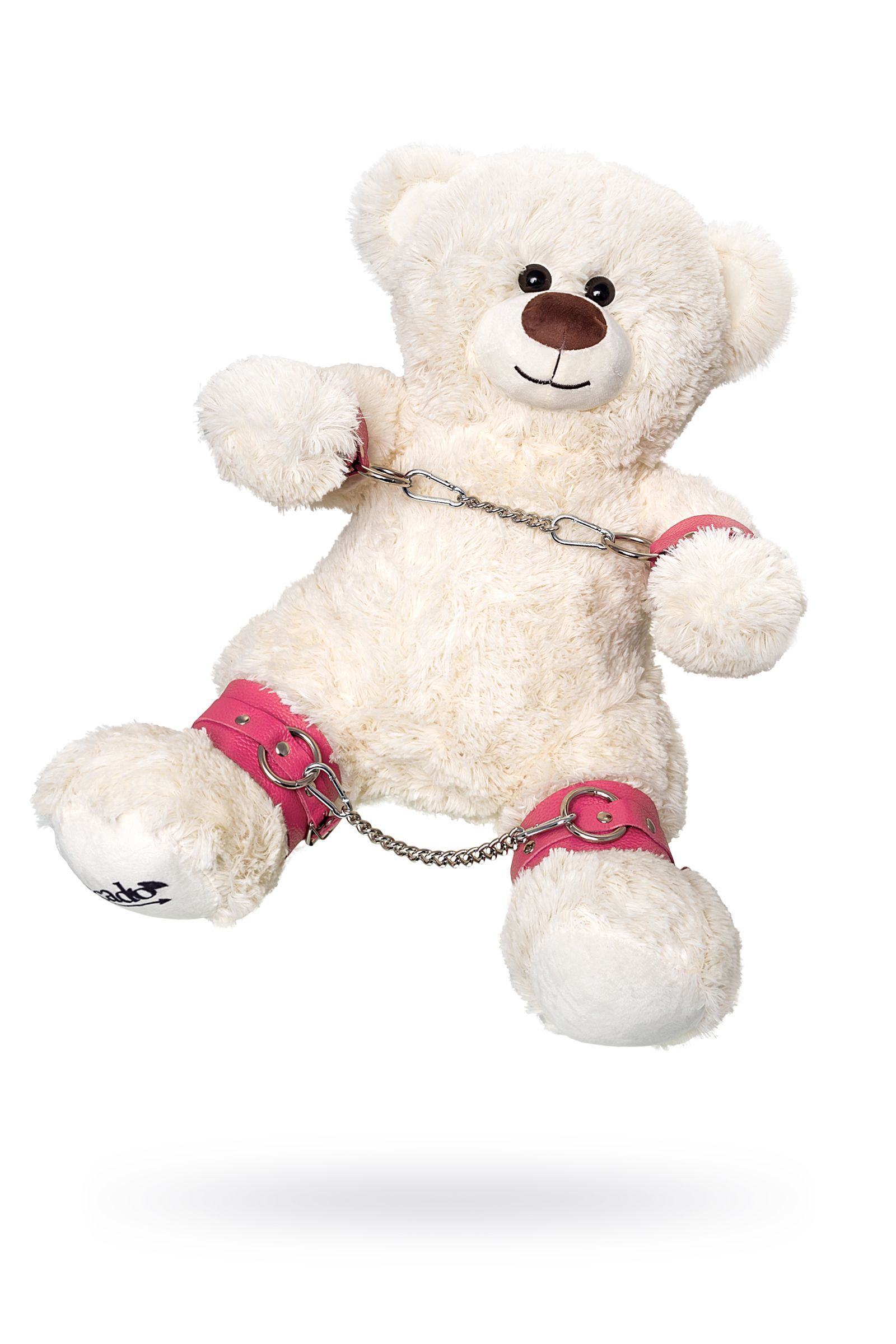 Бондажный набор: белый мишка с розовыми оковами и наручниками (Цвет: розовый)