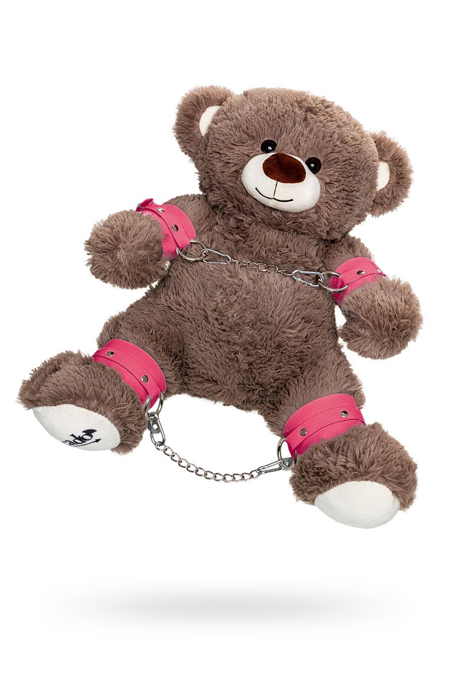 Бондажный набор: бурый мишка с розовыми оковами и наручниками (Цвет: розовый)