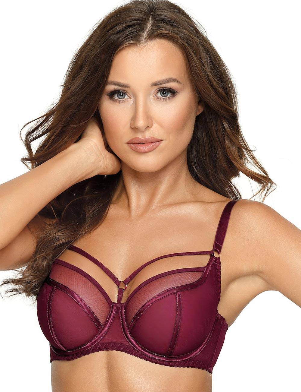 Бюстгальтер на косточках plus size, бордовый, 100F, с декоративными бретелями