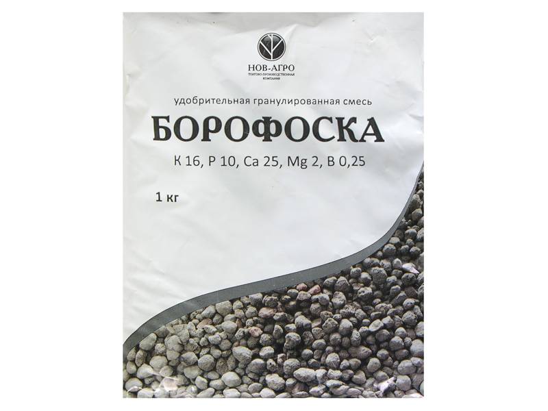 ♦ Борофоска - применяется на всех видах почв под все виды культур как высокоэффективное удобрение пролонгированного действия. ♦ В состав входят только активные природные макроэлементы, непосредственно участвующие в повышении плодородия почвы, улучшении качества урожая (устойчивости к вредителям и увеличения срока хранения). ♦ Внесение под перекопку приствольных кругов (яблони, груши и др.), осеннюю посадку плодово-ягодных культур. ♦ Состав; P-10%, К-16%, В-0,2%, Са-20%, Мg-2%