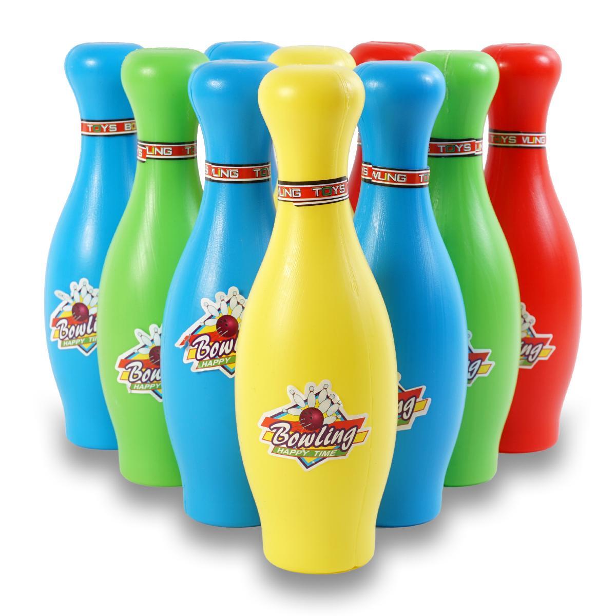 Расставьте 10 разноцветных кеглей в форме треугольника и попробуйте их сбить двумя шарами. Игра помогает детям освоить базовые спортивные навыки и весело провести время с друзьями.