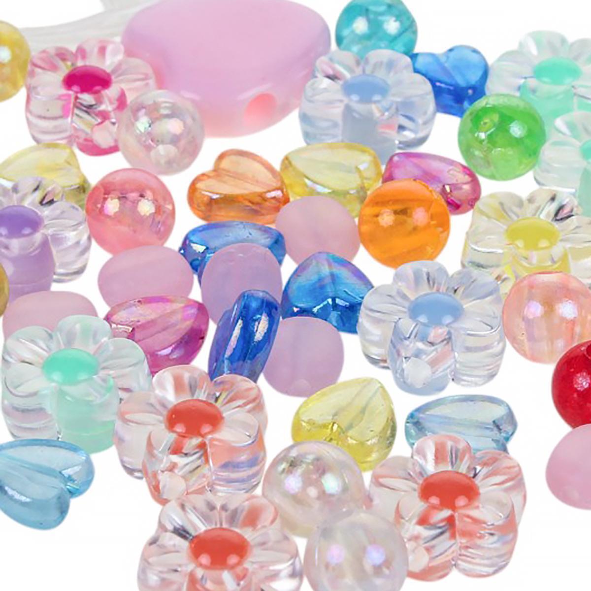 - Бусины разных форм и размеров: цветы, сердечки, круглые элементы