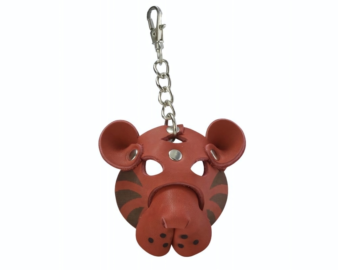 Изделие выполнено из высококачественной натуральной кожи, что гарантирует долговечность и приятные тактильные ощущения. Каждая деталь маски проработана до мелочей: отверстия для глаз, декоративные точки и полосы создают эффект реалистичности. Металлический карабин обеспечивает надежное крепление.