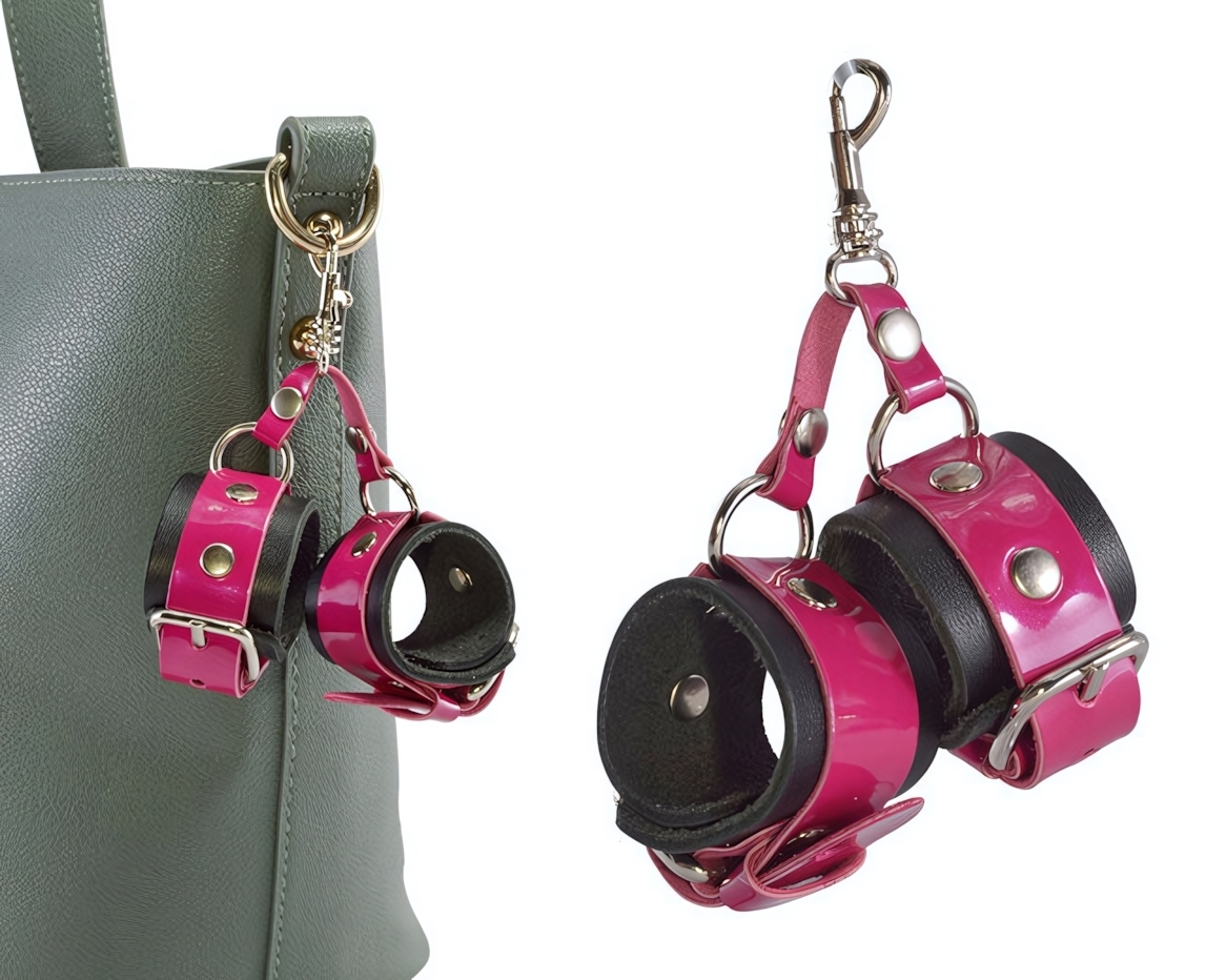Брелок выполнен в форме маленьких наручников, что делает его не только привлекательным, но и практичным. Он легко крепится к сумке, ключам или рюкзаку с помощью надежного карабина. Такой аксессуар станет отличным подарком для друзей или близких, а также добавит нотку игривости в повседневную жизнь.
