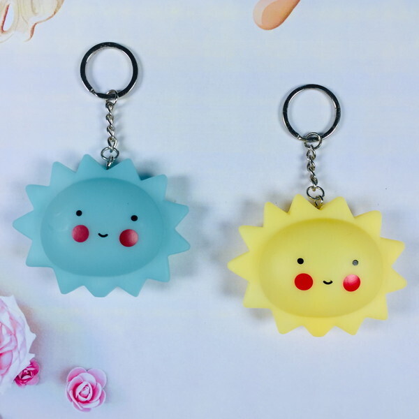 Брелок идеально подходит для использования в качестве ночника или декоративного элемента. Он станет отличным спутником для детей, которые боятся темноты. Легкий и компактный, его удобно носить с собой, прикрепив к ключам или сумке. Яркий дизайн в форме солнца с улыбающимся лицом и красными щечками обязательно привлечет внимание и поднимет настроение.
