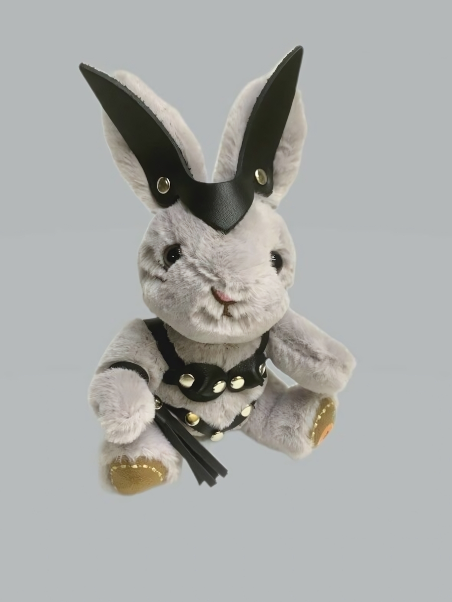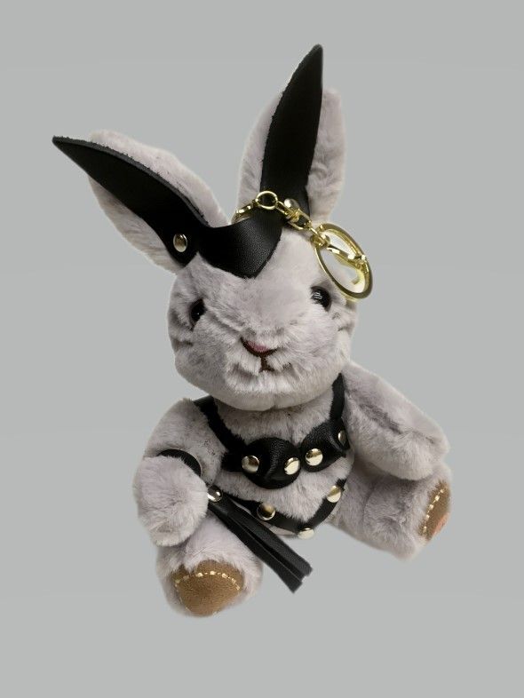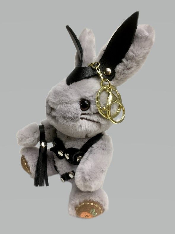 Брелок-зайчиха с кожаным костюмом и съемной плетью, 18 см, разноцветный