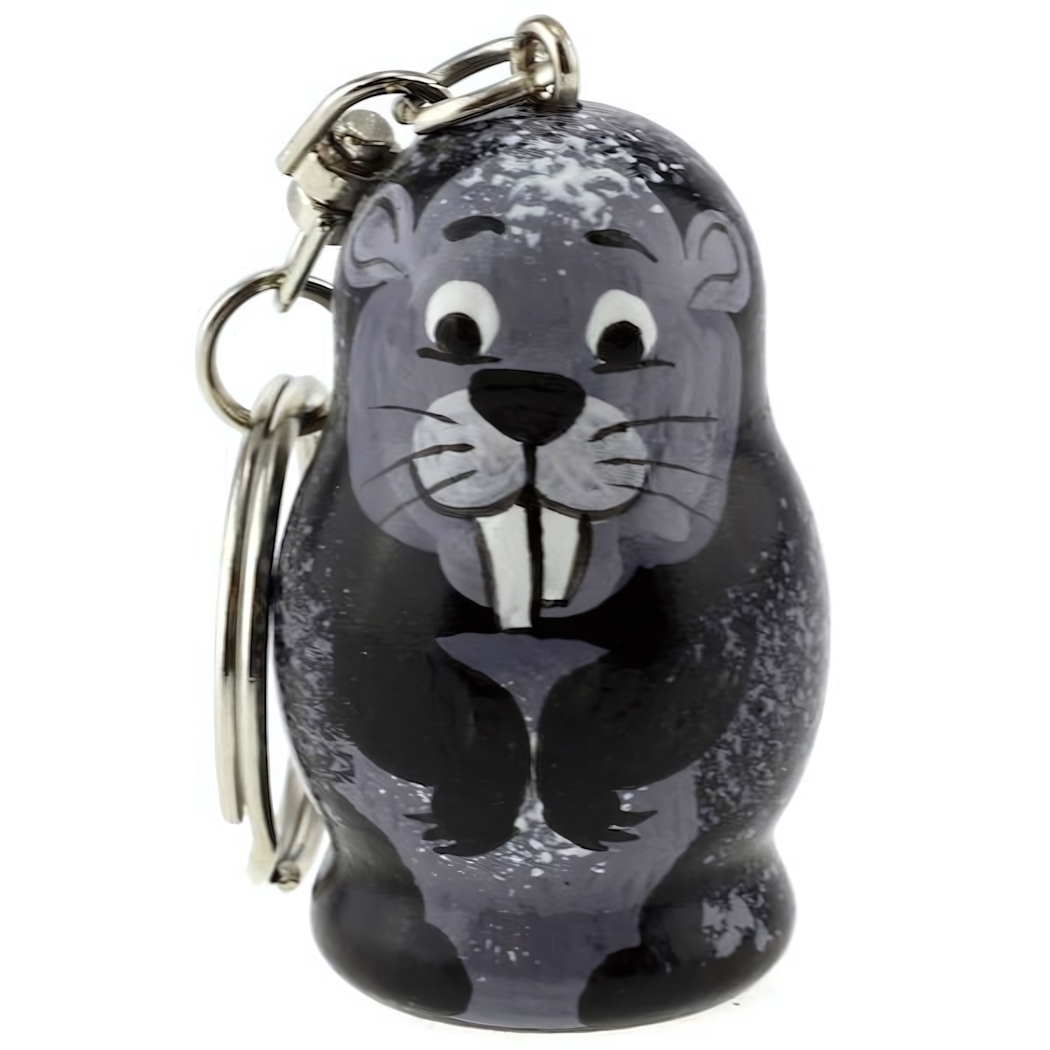 Брелок "Бобер" пластиковый, игривый дизайн, серый с черно-белыми деталями, металлическое кольцо