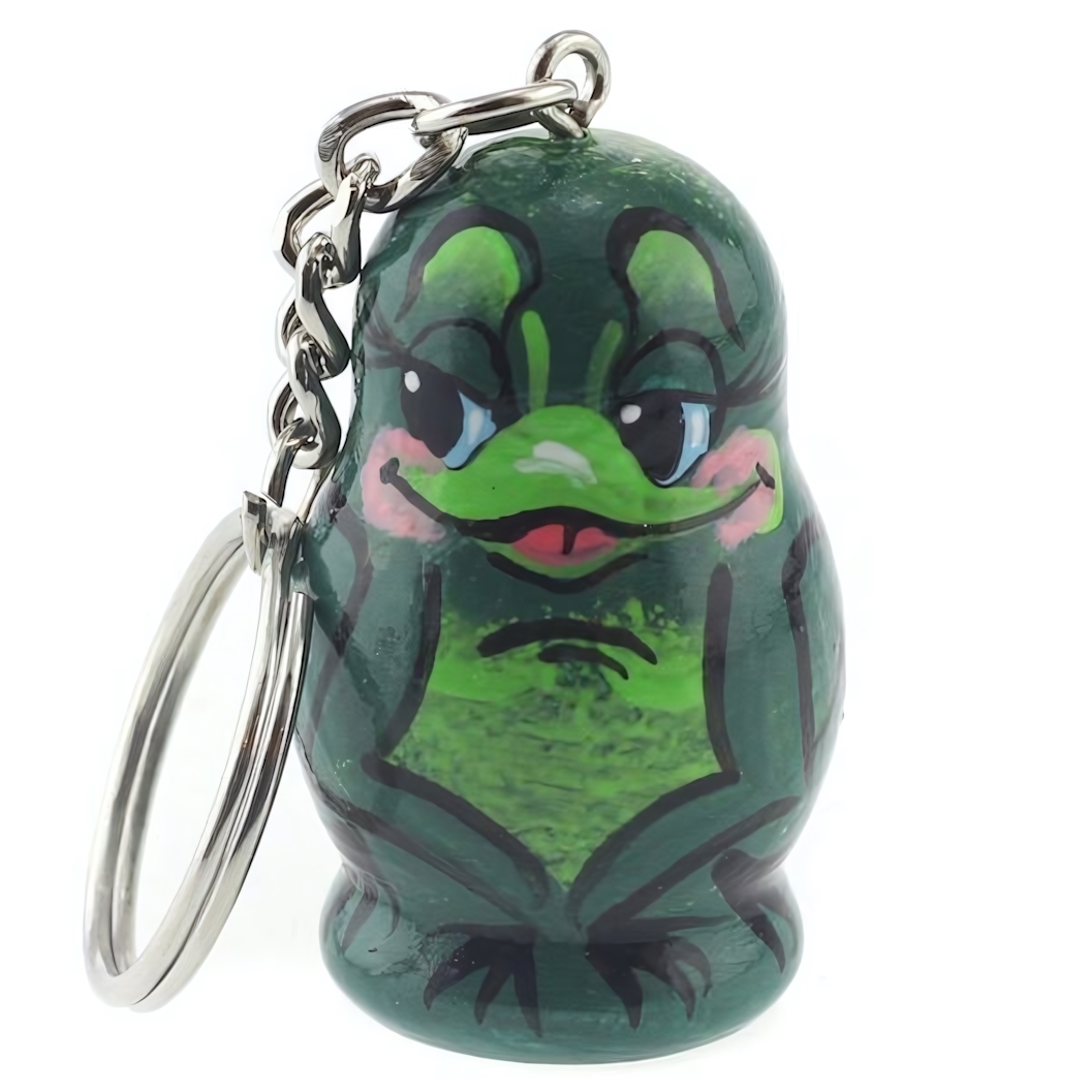 Яркий брелок с детализированной фигуркой лягушки станет практичным дополнением ваших ключей или оригинальным декором для сумки. Тщательно проработанные элементы росписи подчеркивают индивидуальность изделия, а компактный размер делает его универсальным в использовании.