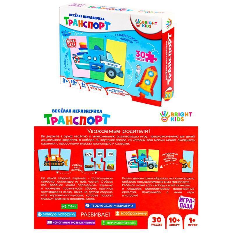 - Развитие через игру: 30 красочных деталей пазла помогут ребенку в игровой форме познакомиться с различными видами транспорта и научиться находить ассоциации.