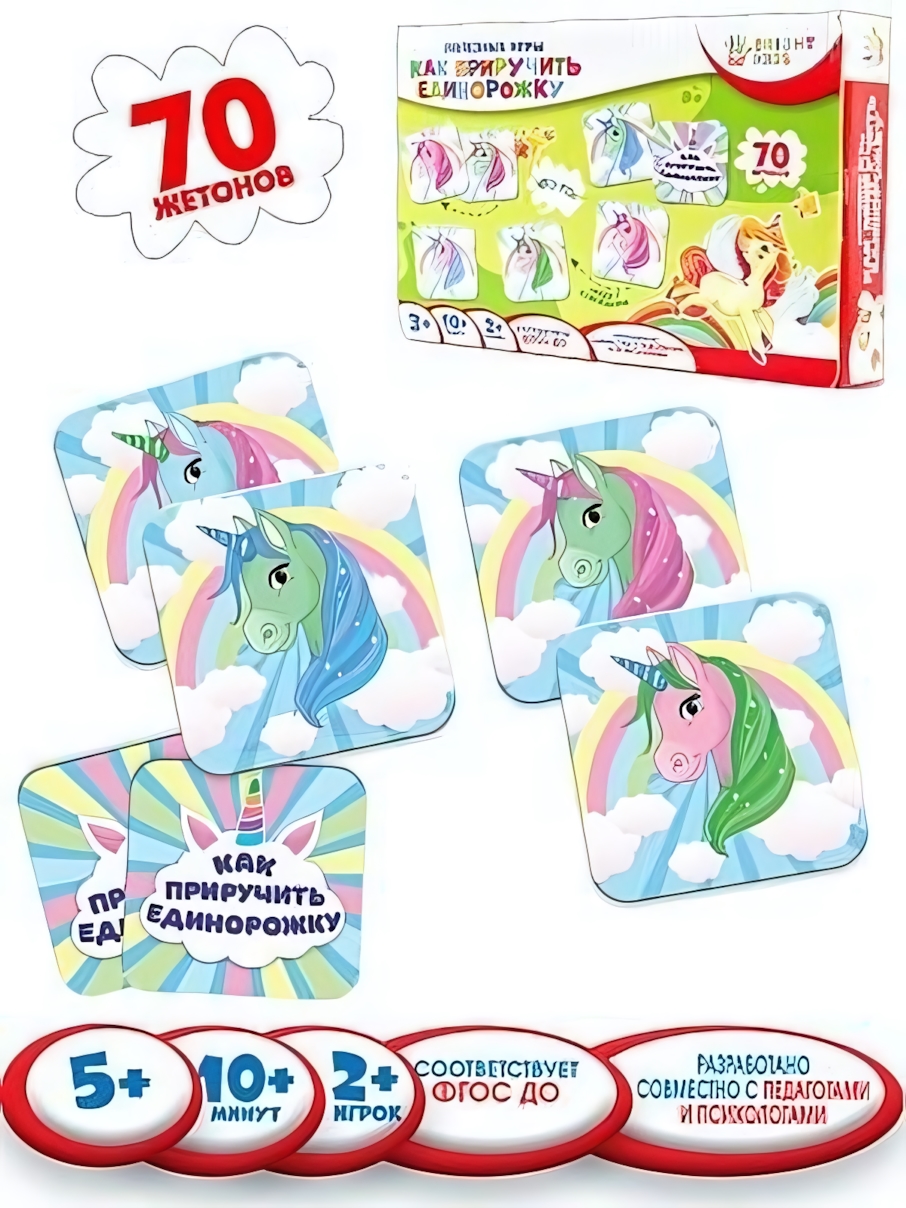Настольная игра "Как приручить единорожку", 70 жетонов, от 5 лет