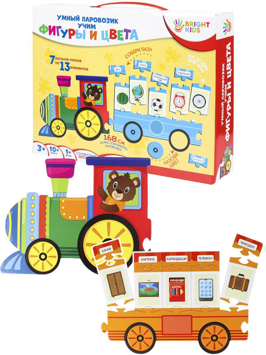 Пазл-паровозик 'Bright Kids' 7 вагонов, 3+ года, учит фигуры/цвета