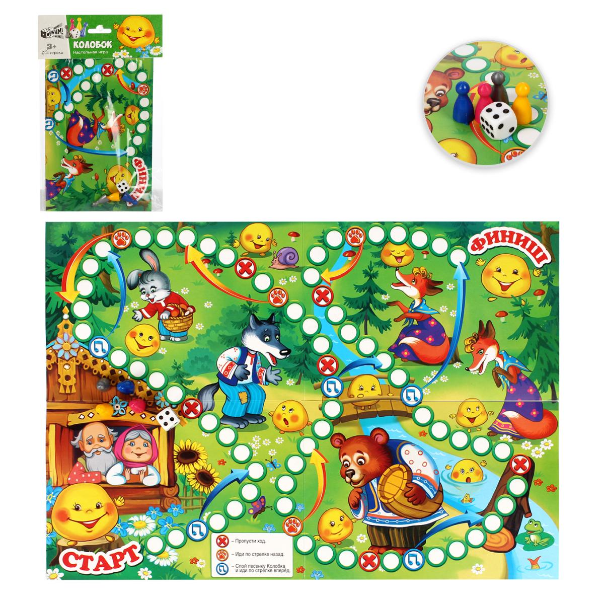 Игровое поле выполнено из качественного картона, а фишки и кубик — из пластика. Яркие цвета и мультяшные иллюстрации создают атмосферу веселья и радости. Игра «Колобок» станет отличным подарком для вашего ребенка и поможет провести время с пользой и удовольствием!