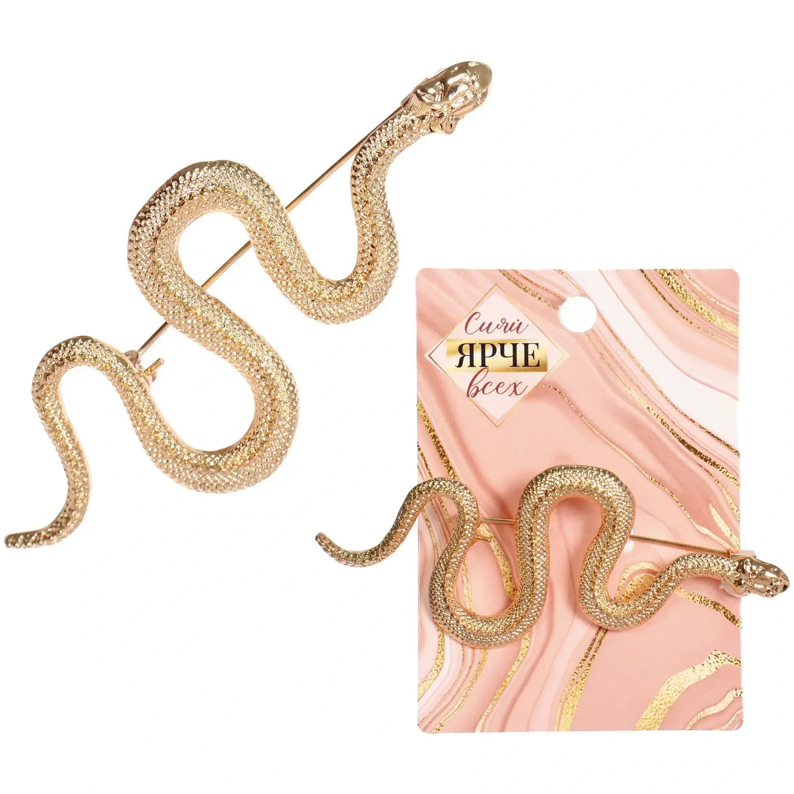 Брошь «Аяна» в виде змеи, металл, золотистый цвет, 7,5х3,2 см