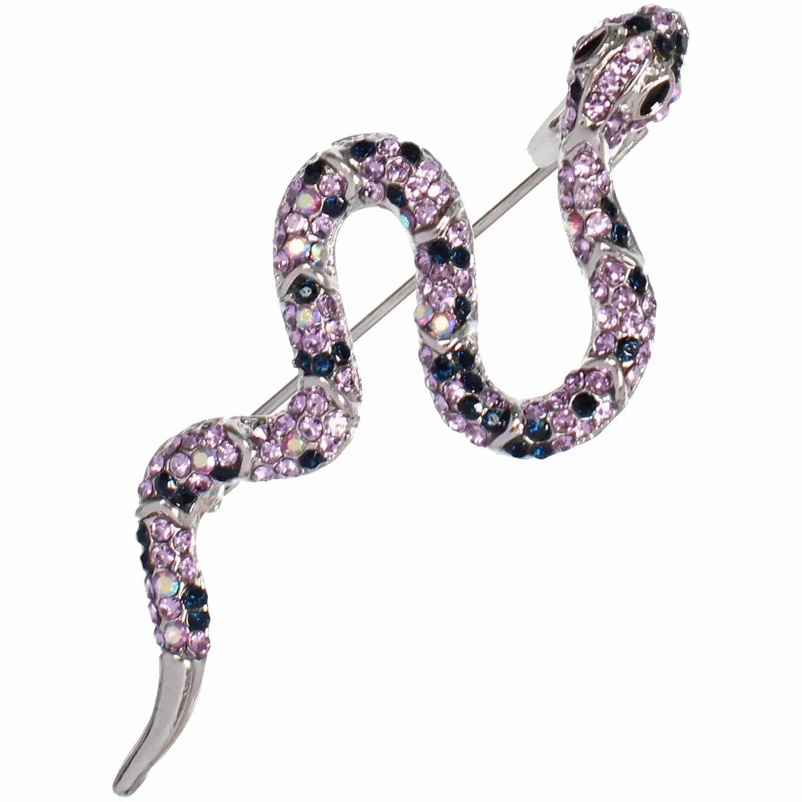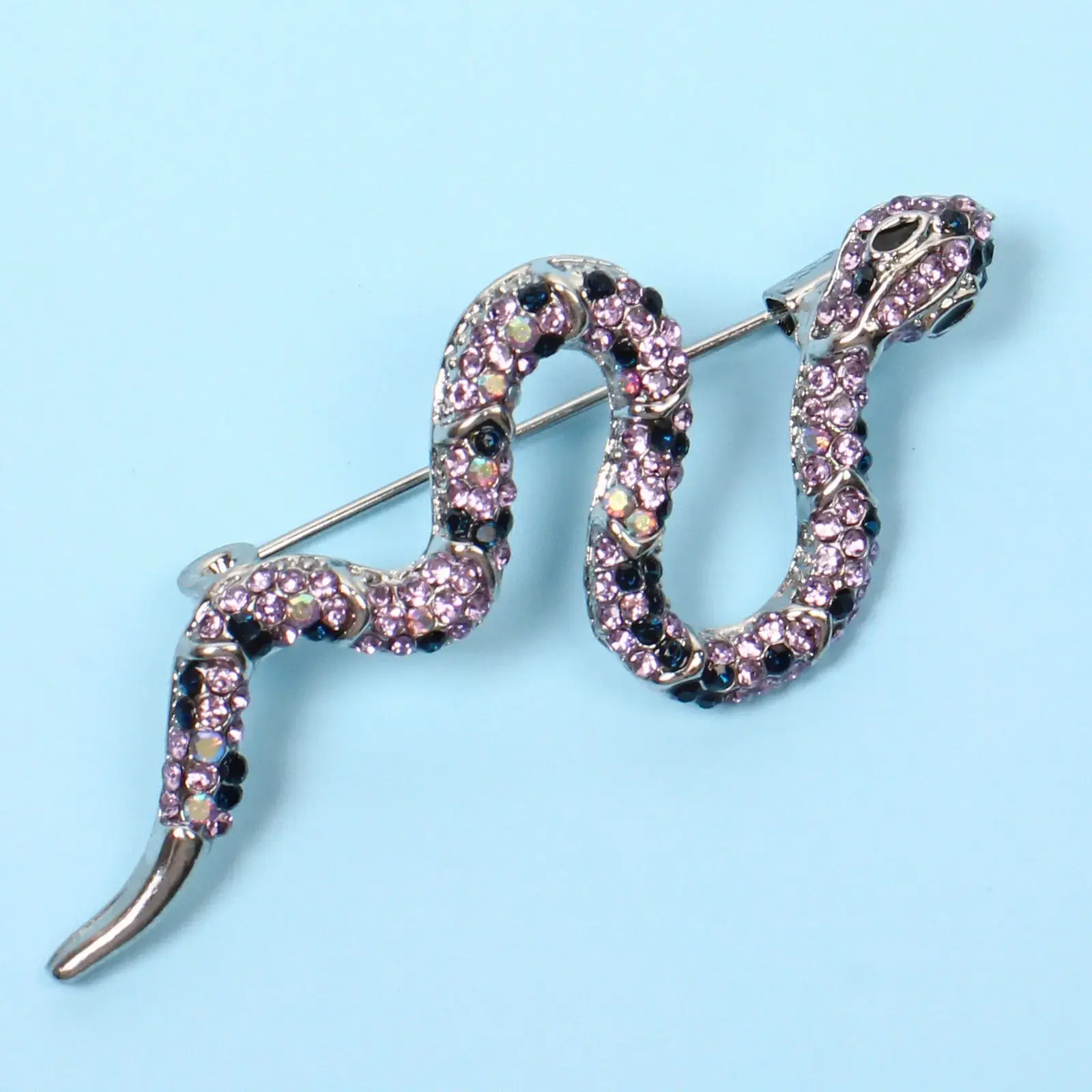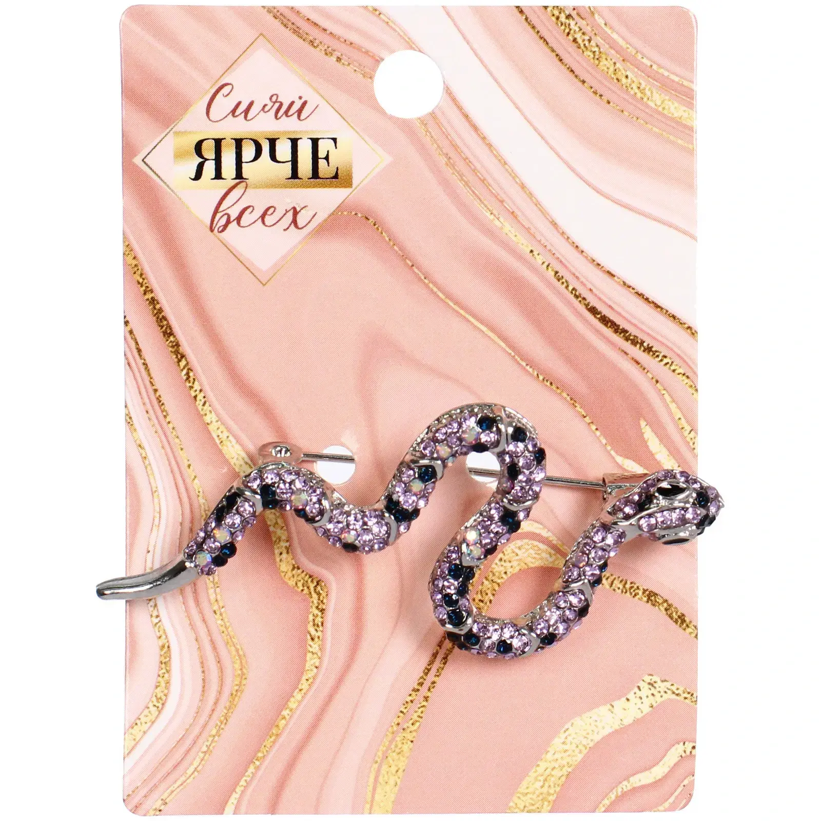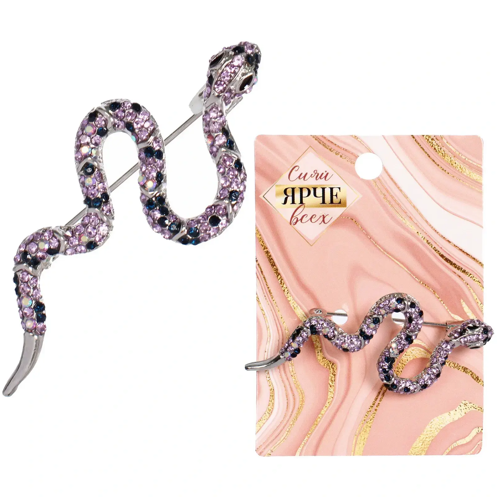 Детализированная проработка формы змеи с реалистичными чешуйками и украшенной кристаллами головой делает изделие особенным. Металлическая застежка обеспечивает надежную фиксацию на одежде.
