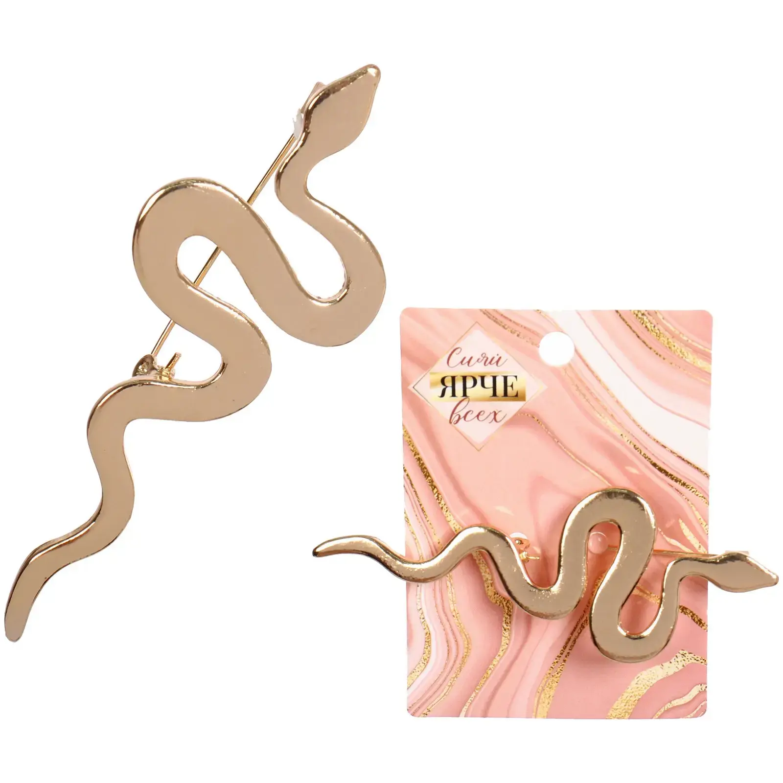 Изящная змея из металла с золотистым покрытием станет эффектным акцентом в вашем гардеробе. Универсальный аксессуар сочетает практичность броши и функциональность заколки для волос.