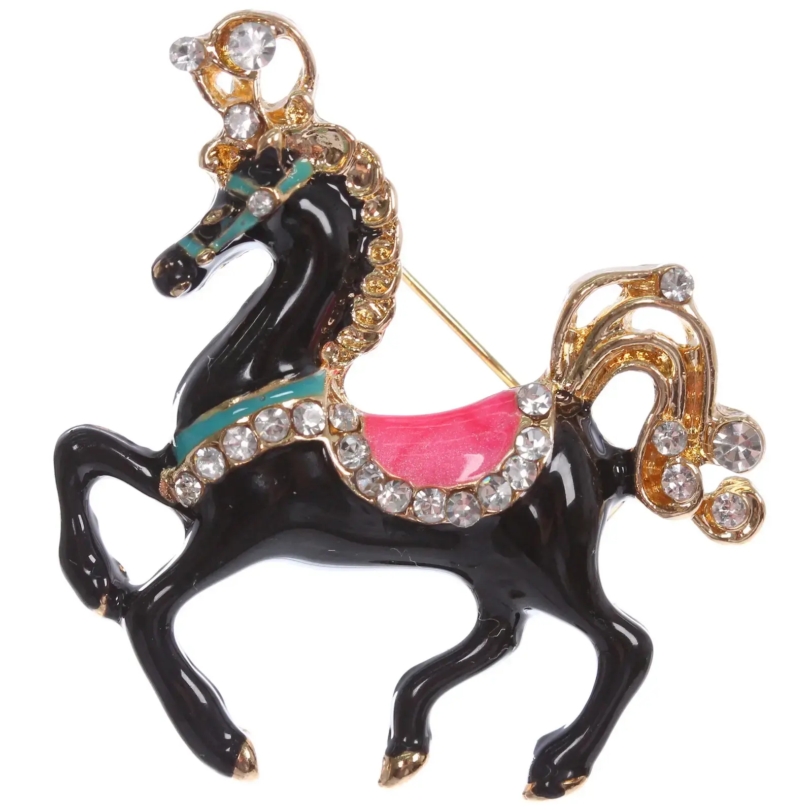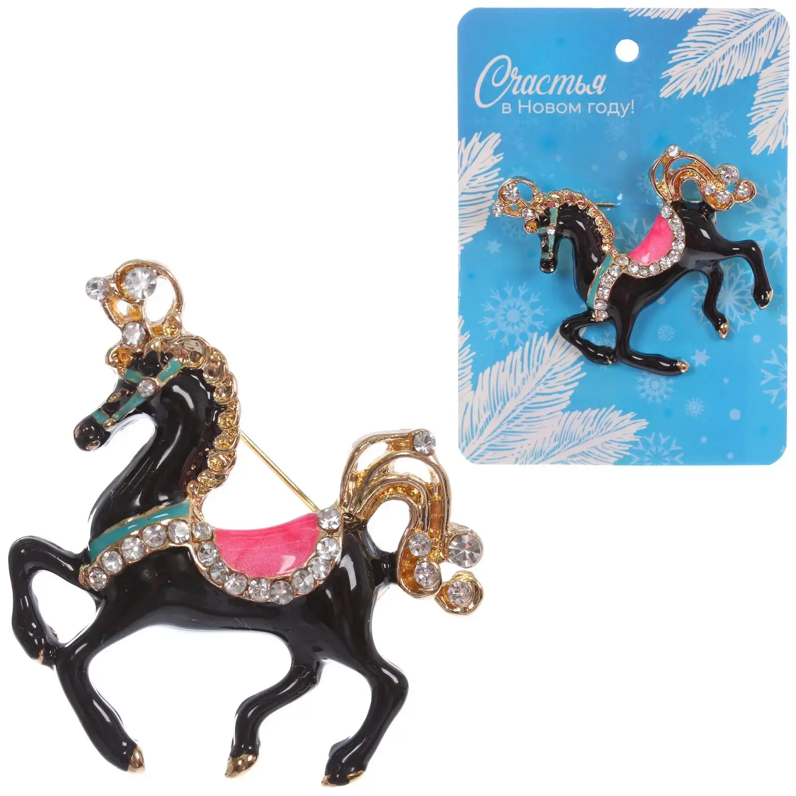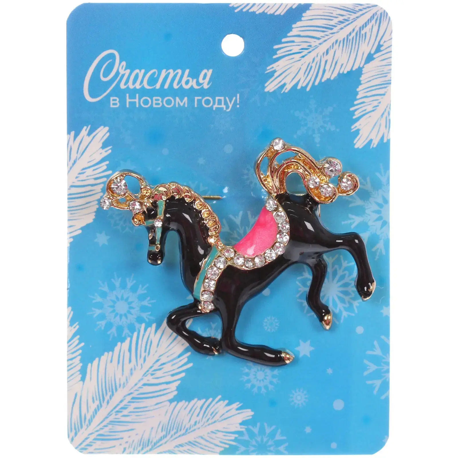 Объемная брошь в виде грациозного коня станет изюминкой вашего праздничного лука. Изысканное сочетание черного фона с золотистыми акцентами и мерцающими стразами создает эффект ночного неба — именно то, что нужно для волшебства в канун Нового года.