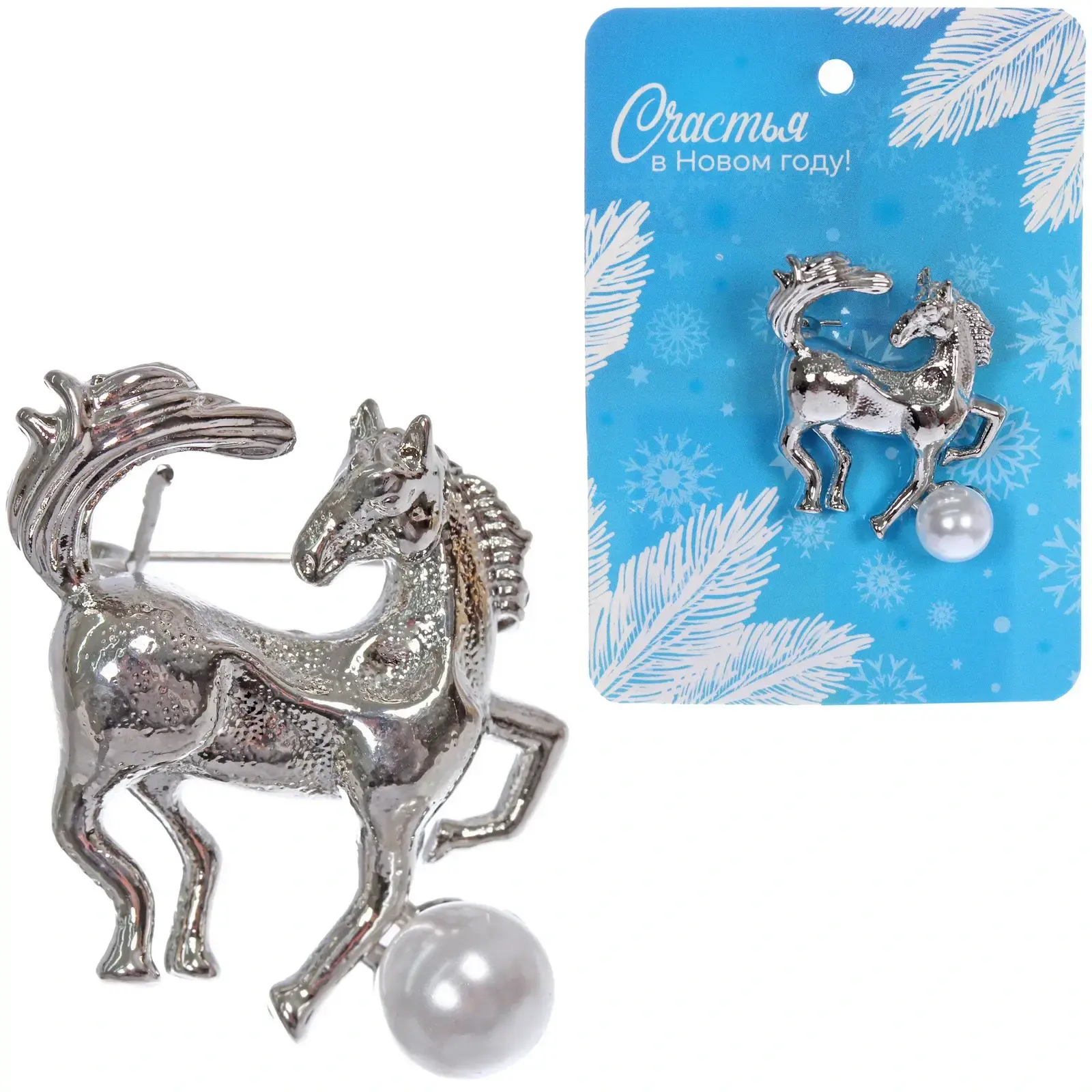 Серебристая брошь с динамичным силуэтом лошади и жемчужным акцентом станет изысканным дополнением праздничного наряда. Идеальный аксессуар для создания запоминающегося образа на корпоративы, семейные торжества и новогодние фотосессии.