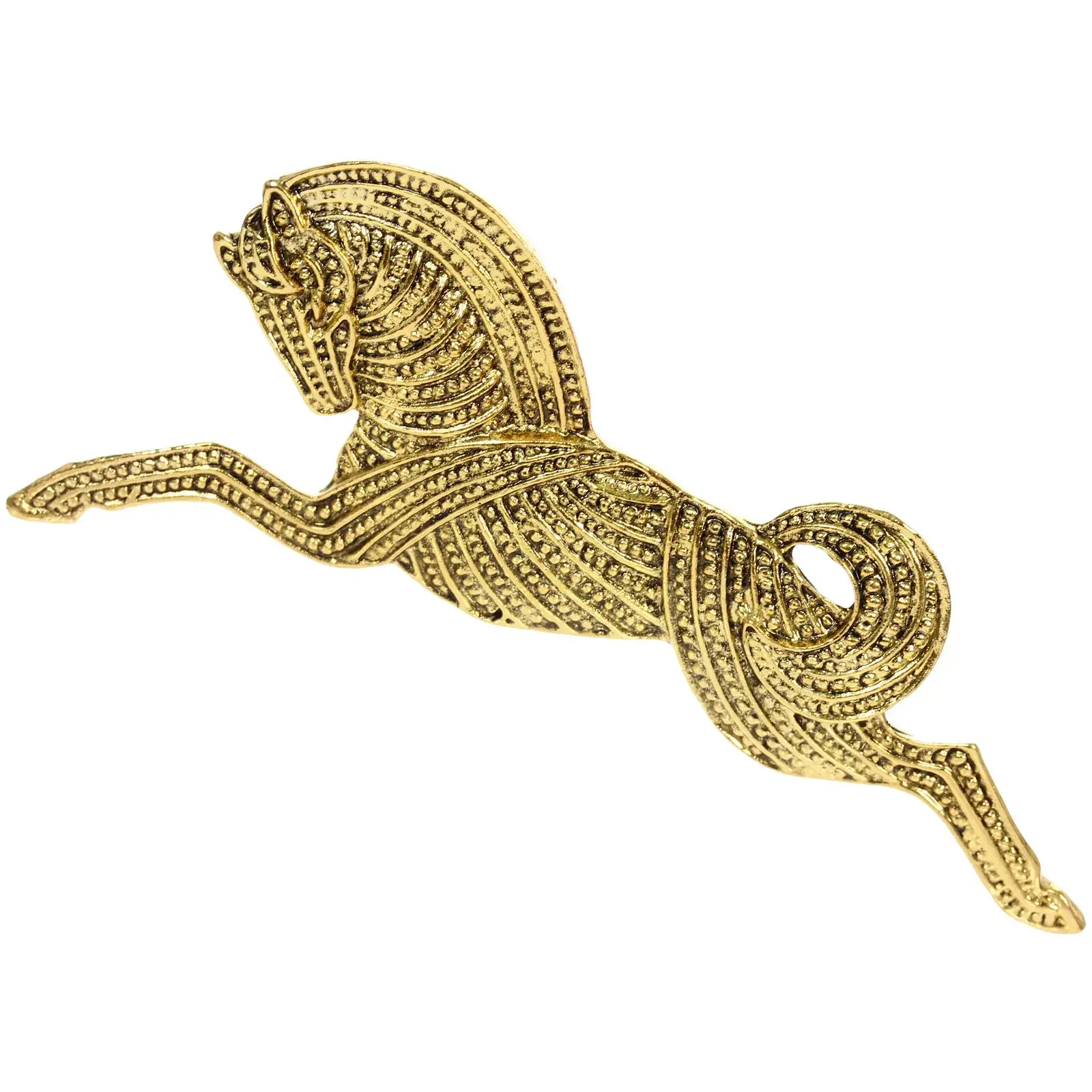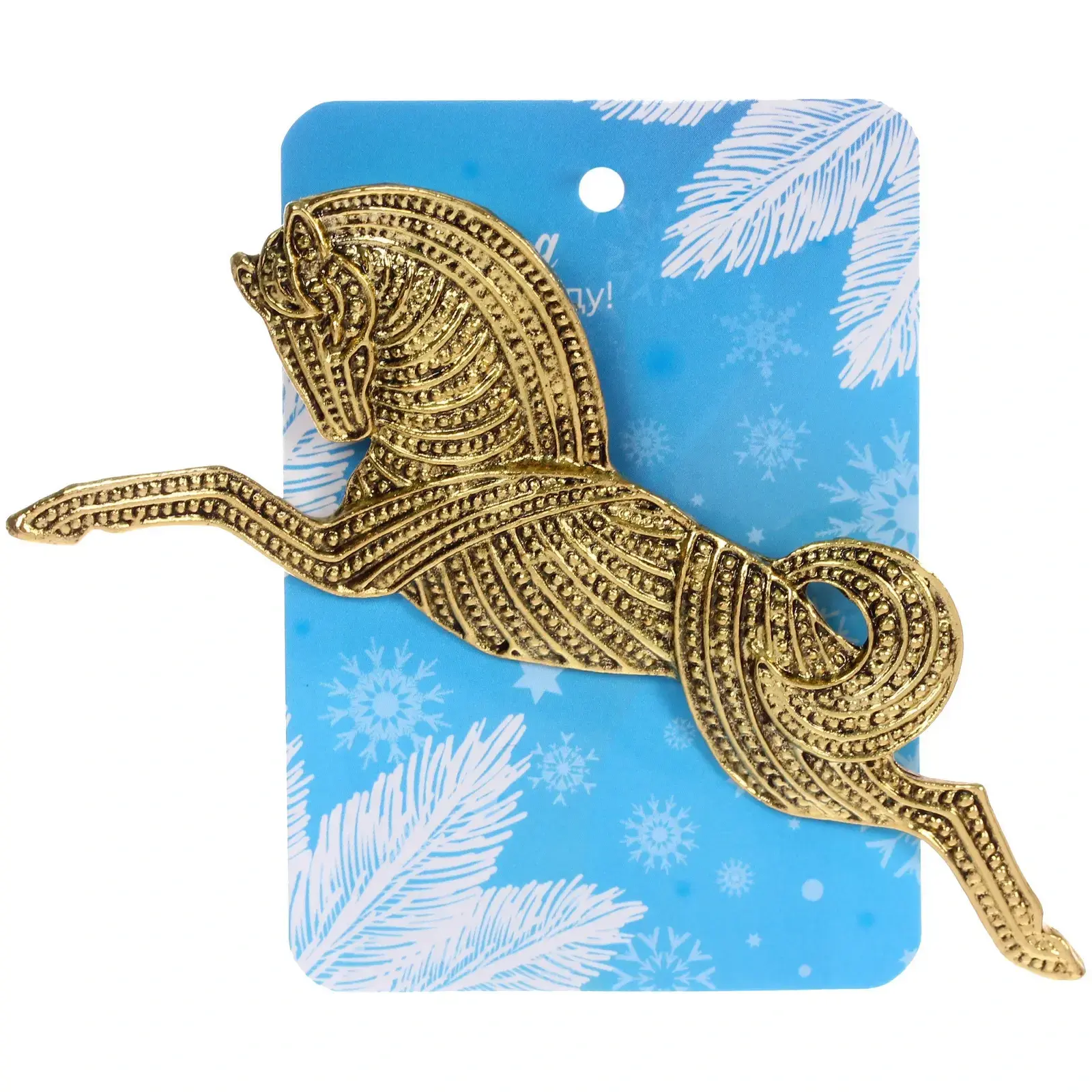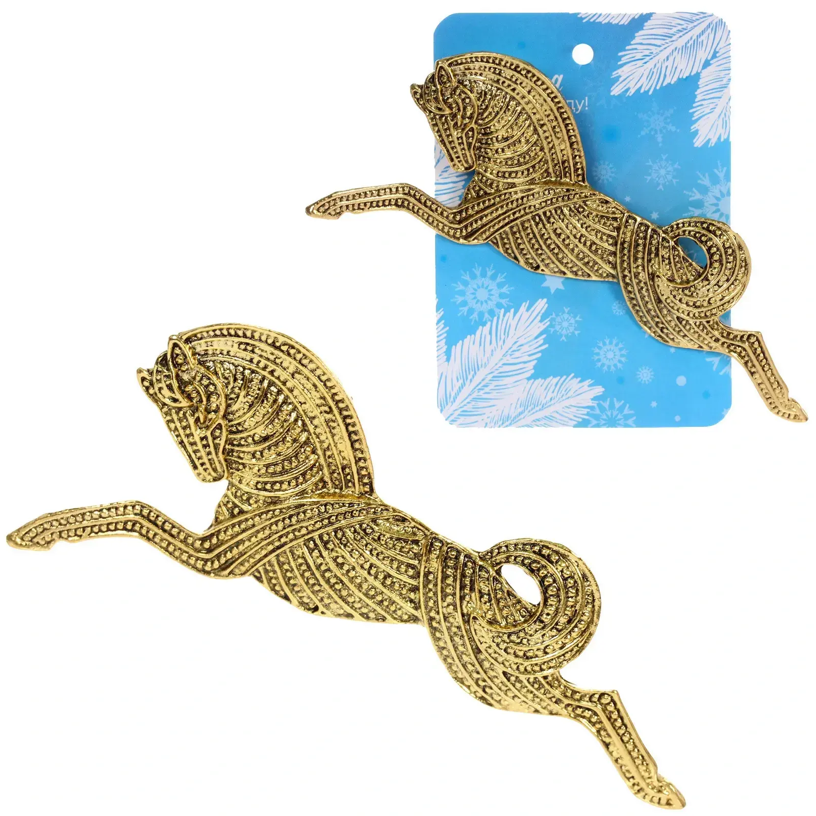 Брошь «Best Podarok - Valkyrie» с детализированным дизайном в виде скачущей лошади станет изысканным дополнением новогодних нарядов, пальто или аксессуаров. Золотистый оттенок и фактурная поверхность создают эффект антикварного украшения, добавляя образу нотку благородства и роскоши.