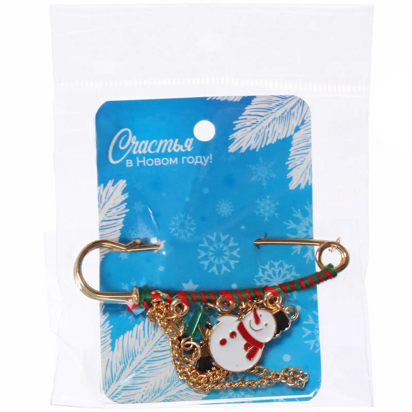 Брошь украшена красно-зелеными нитями и дополнена цепочкой, что придаёт ей особый шарм. Она упакована в стильную коробку с надписью «Счастья в Новом году!», что делает её отличным вариантом для подарка. Не упустите возможность добавить этот замечательный аксессуар в свою коллекцию или подарить его близким!