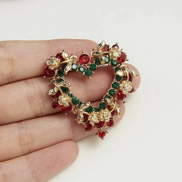 Элегантная брошь в форме сердца станет ярким акцентом вашего образа, придавая ему нотку романтики и изысканности. Её огненный дизайн, сочетающий красные и зелёные камни, привлекает внимание и поднимает настроение, делая вас центром притяжения в любой ситуации.