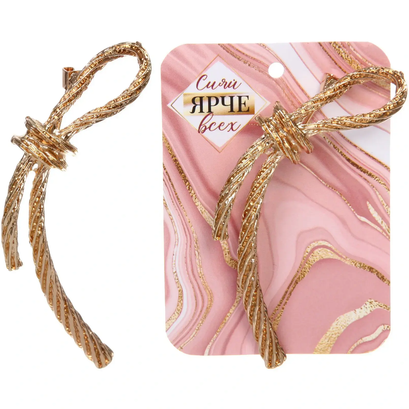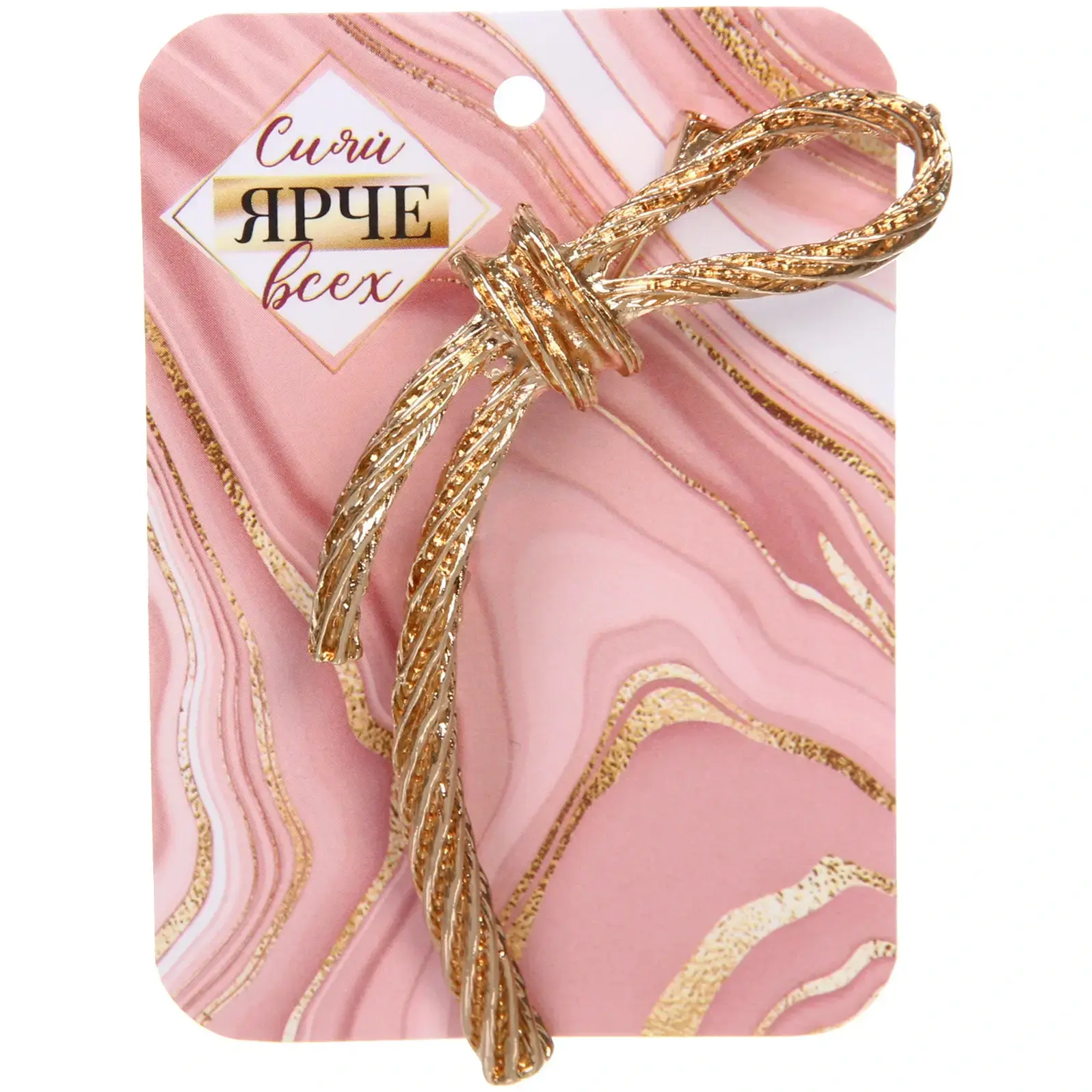 Размер броши составляет 4 см, что делает её компактной и удобной для ношения. Золотистый цвет и текстурированная поверхность придают ей элегантный вид, а застежка в виде шпильки обеспечивает надежное крепление. Брошь упакована в стильную упаковку нежных розовых тонов с абстрактным мраморным узором, что делает её отличным подарком для близких.
