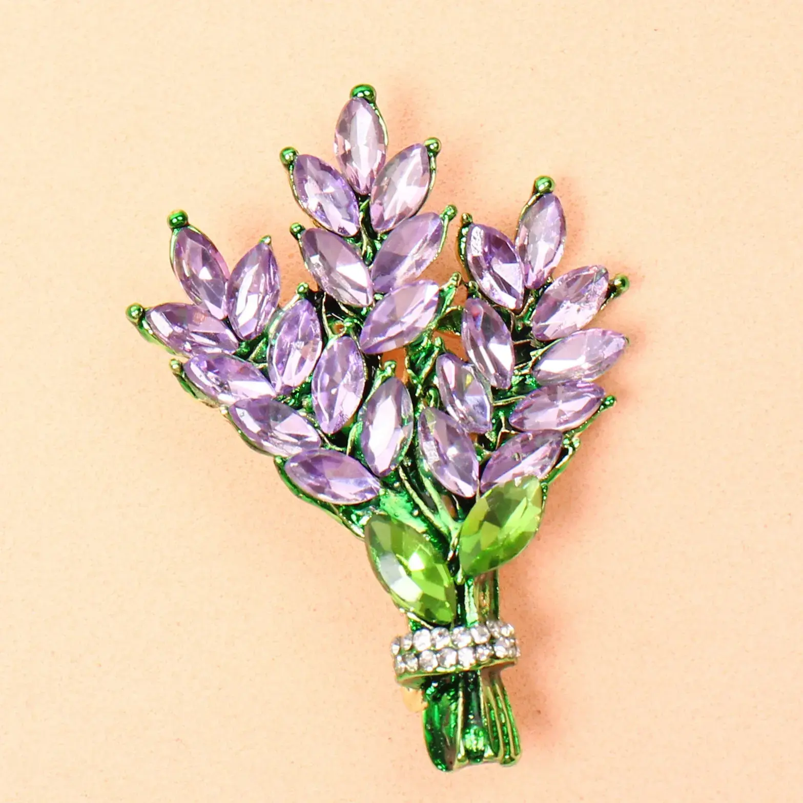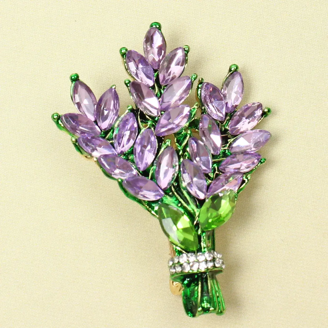 Элегантная брошь в виде букета лаванды станет идеальным акцентом для любого наряда. Благодаря благородному сочетанию фиолетовых камней и зеленых элементов, она подчеркнет вашу индивидуальность и женственность.