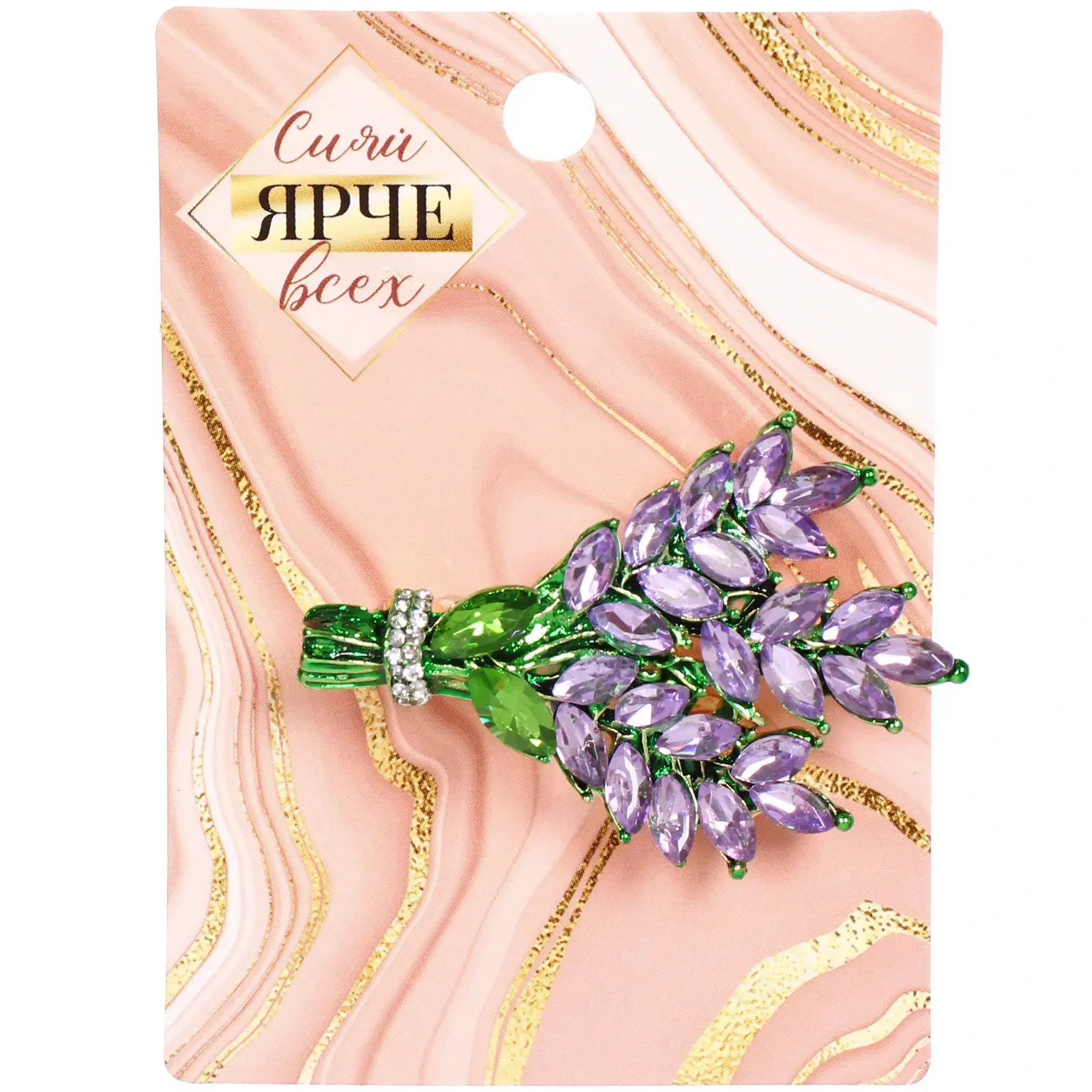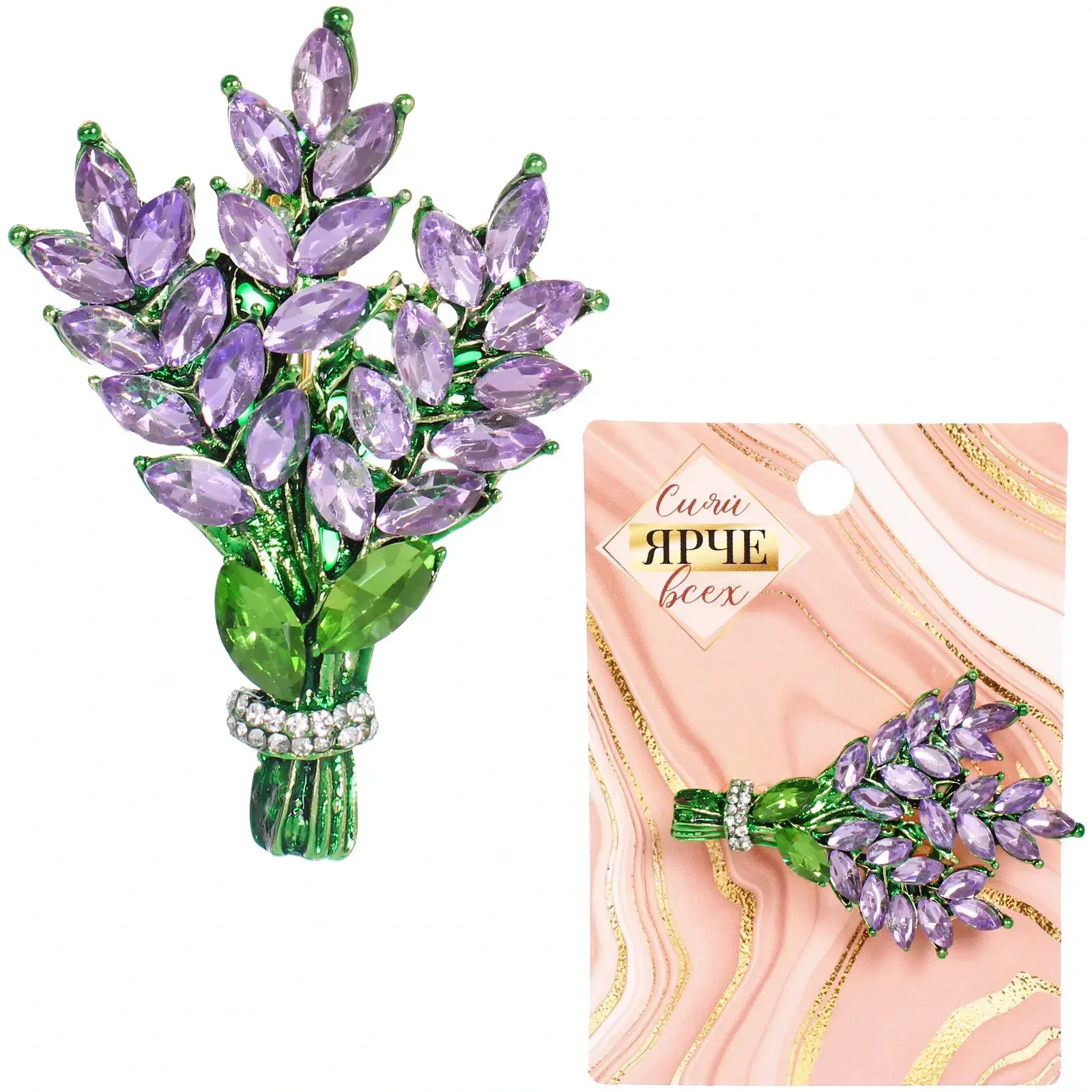 Брошь 'GOLD Podarok', лаванда, фиолет/зеленый, металл/стекло, 4.3х3.1см