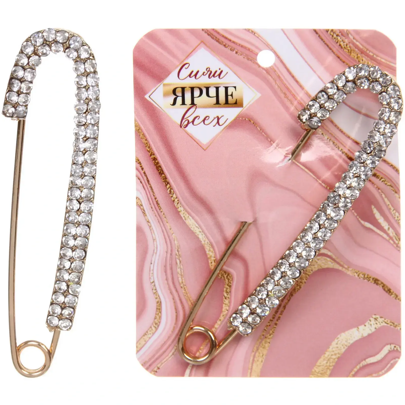 Эта изысканная брошь в виде булавки станет не только стильным аксессуаром, но и надежным талисманом от сглаза. С золотистым покрытием и блестящими стразами, она добавит изюминку в любой образ и подчеркнет вашу индивидуальность. Брошь идеально подходит для повседневной носки, а также станет отличным подарком для близких.
