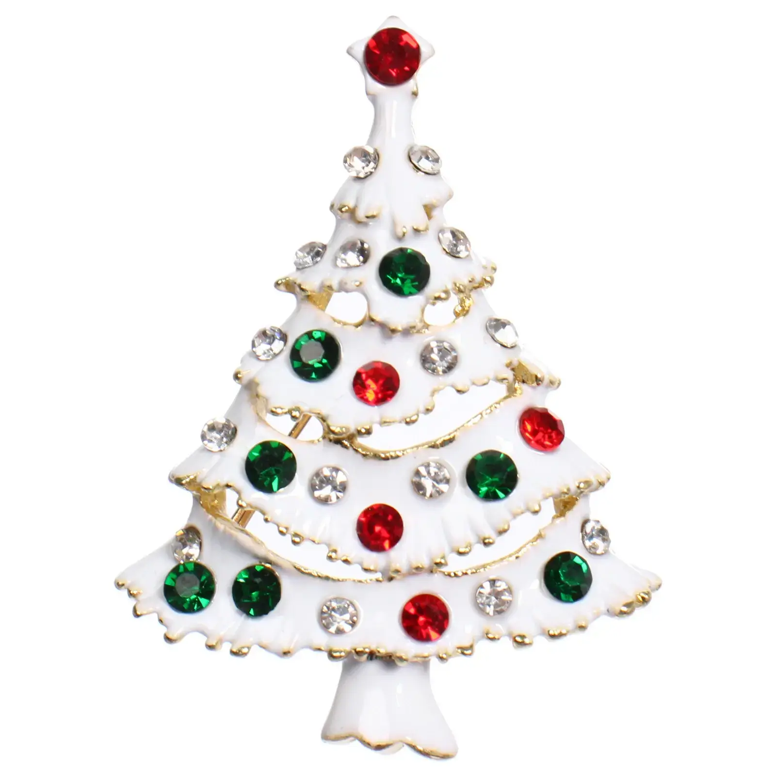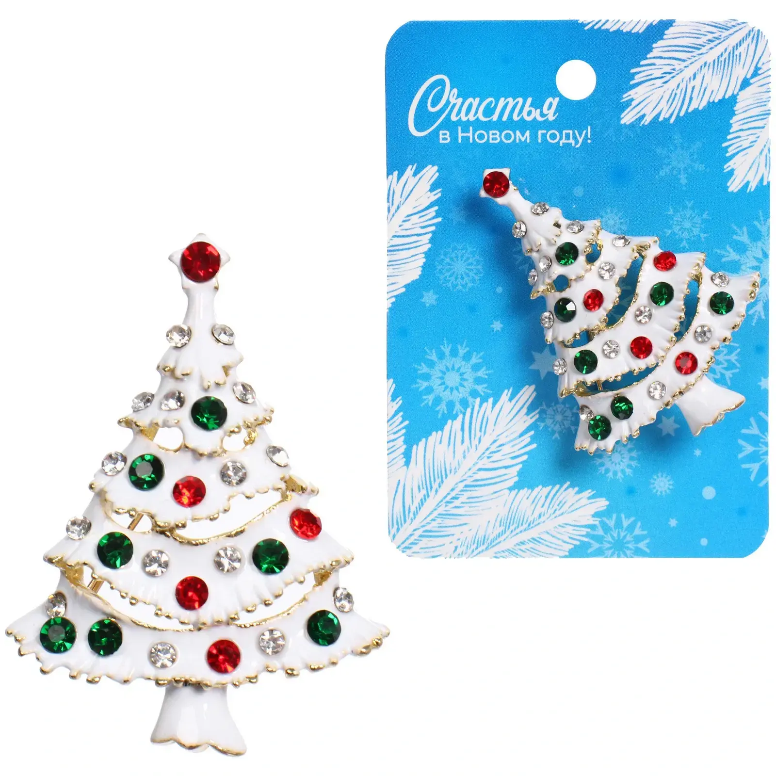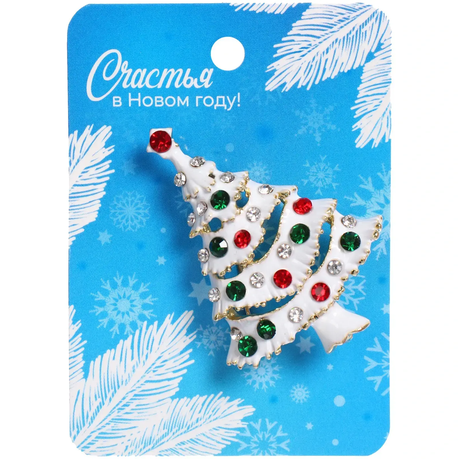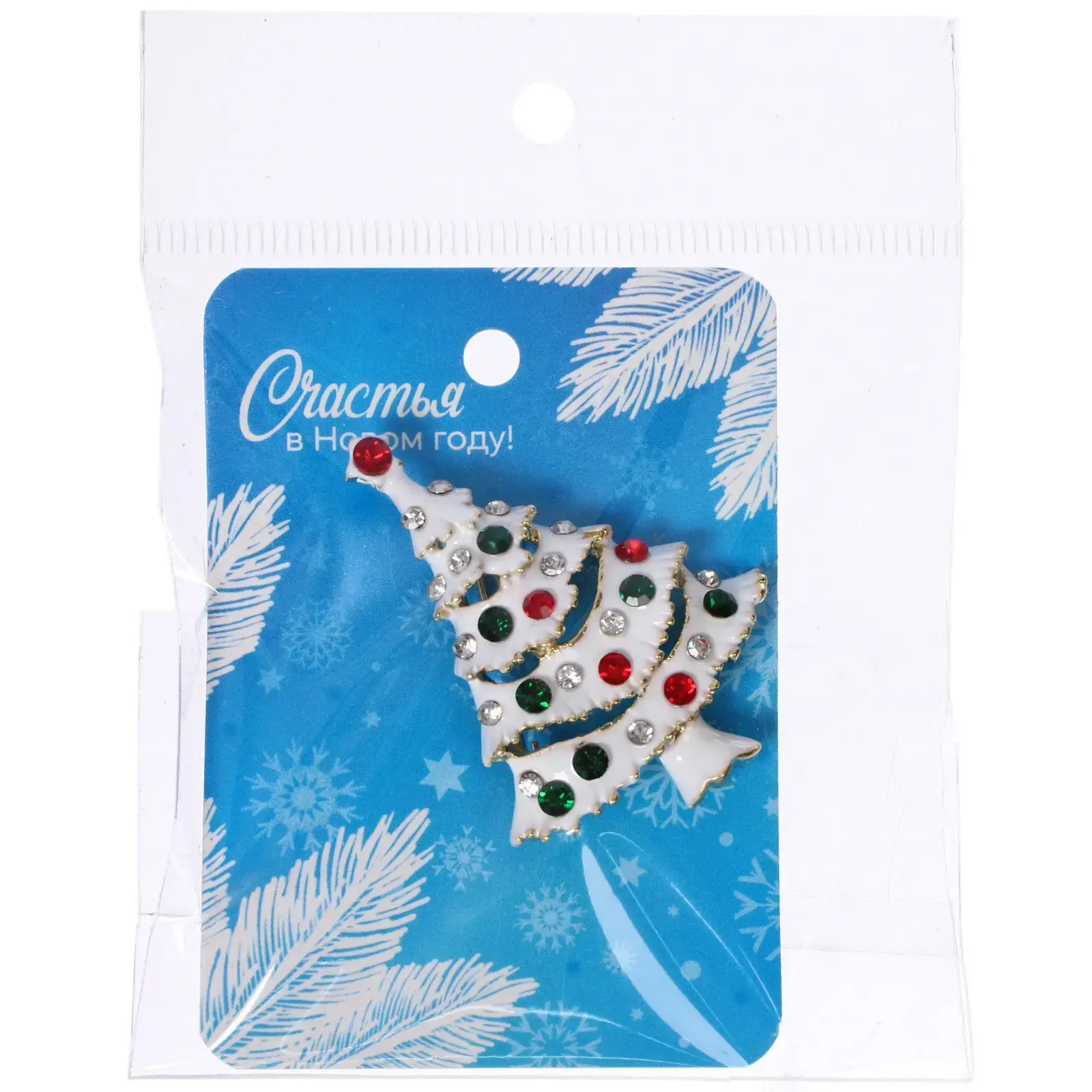 Эта изысканная брошь станет идеальным аксессуаром для новогодних праздников, добавляя нотку волшебства и стиля в ваш образ. Выполненная в форме рождественской ёлки, она украшена яркими стразами, которые создают эффект сияния и привлекают внимание. Брошь выполнена в белом цвете с золотыми элементами, что делает её универсальным украшением для любого наряда.