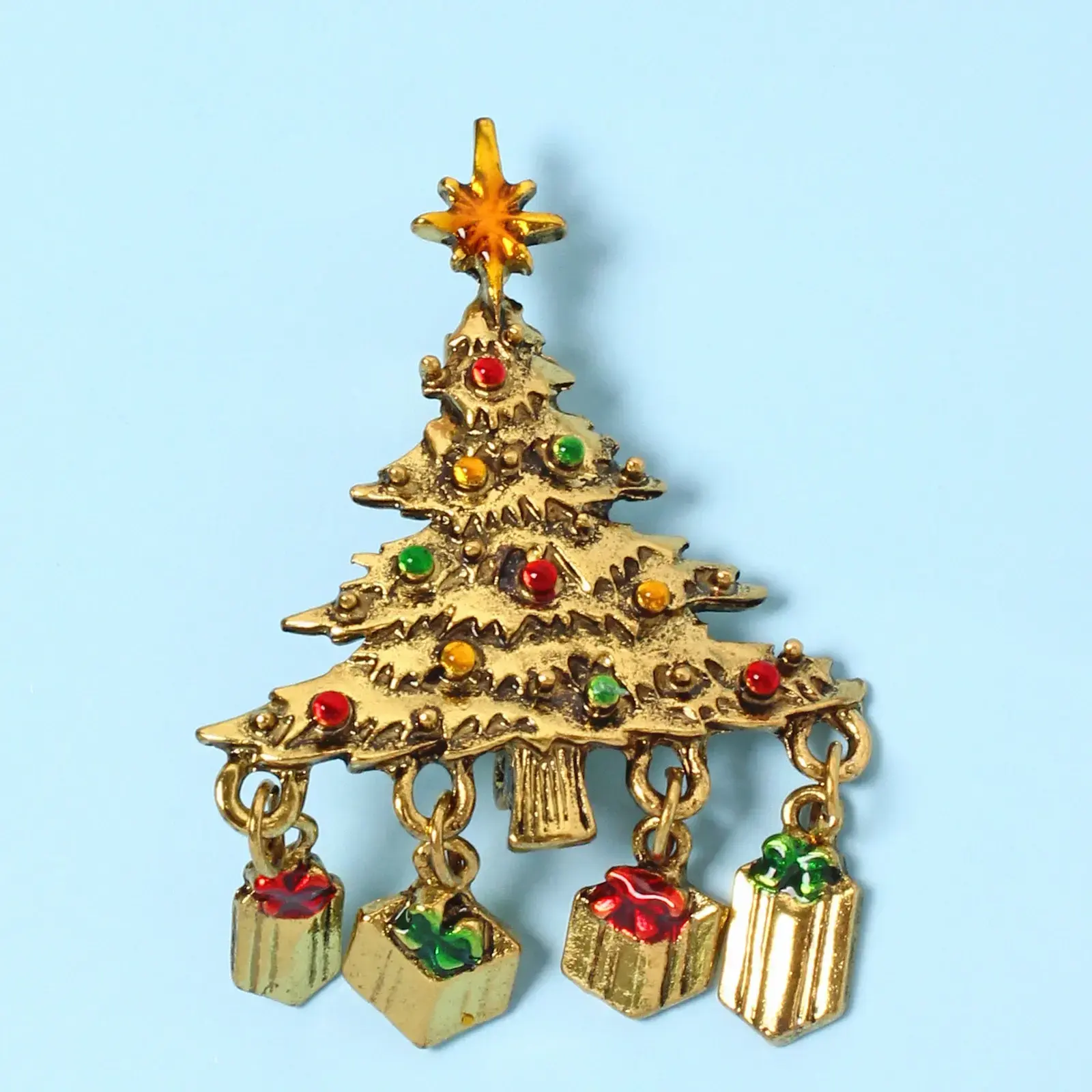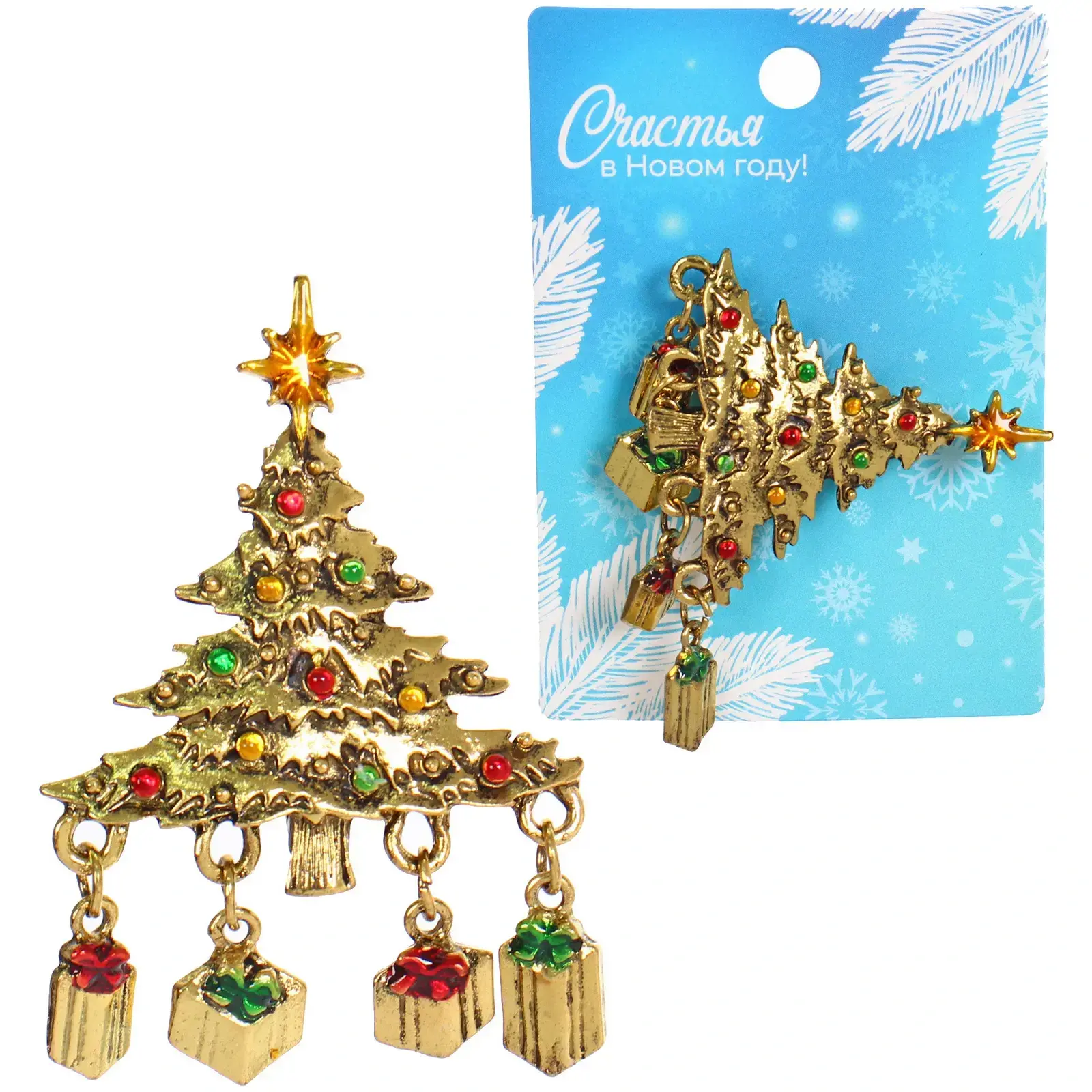 Праздничная брошь в форме ёлочки станет идеальным аксессуаром для создания неповторимого новогоднего образа. Благородное золотое покрытие и яркие цветные элементы привлекут восхищенные взгляды на любом праздничном мероприятии.