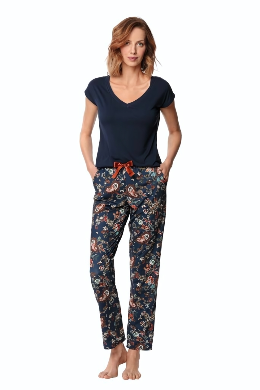 Пижамный комплект Livia с брюками, цвет темно-синий, XL, вискоза 70%, мягкий комфорт