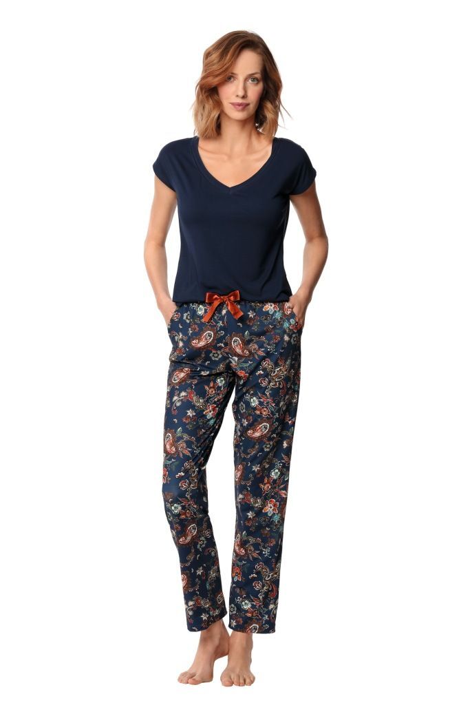 Пижамный комплект "Livia": топ и брюки с цветочным принтом, карманы, размер XXL, темно-синий