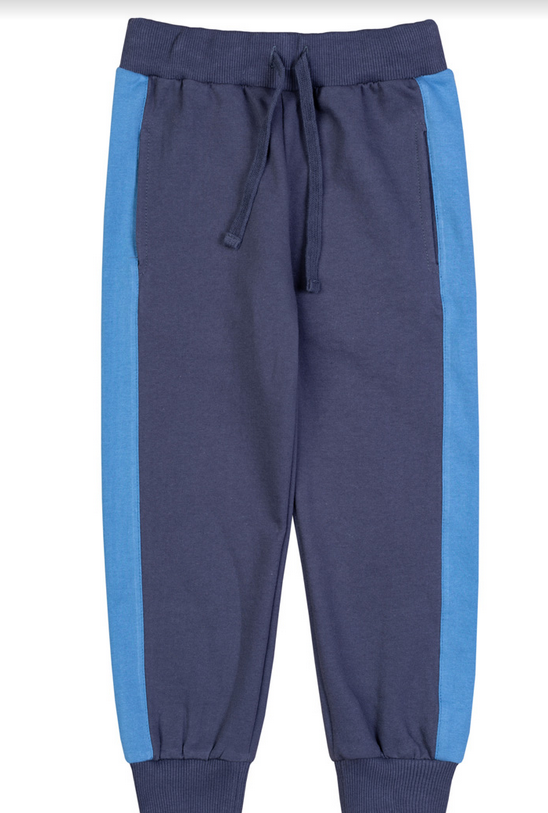 Брюки спортивные для мальчика, 100% хлопок, р.98, темно-синие/голубые, с резинкой и манжетами