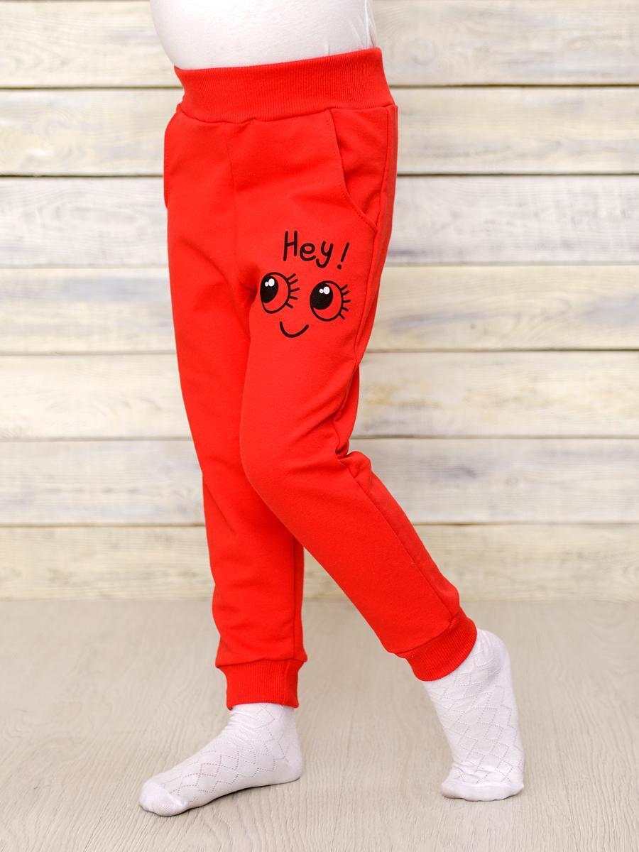 Детские брюки с эластичным поясом, 2 кармана, вышивка "Hey!", размер 86, красный, "Счастливая малинка"