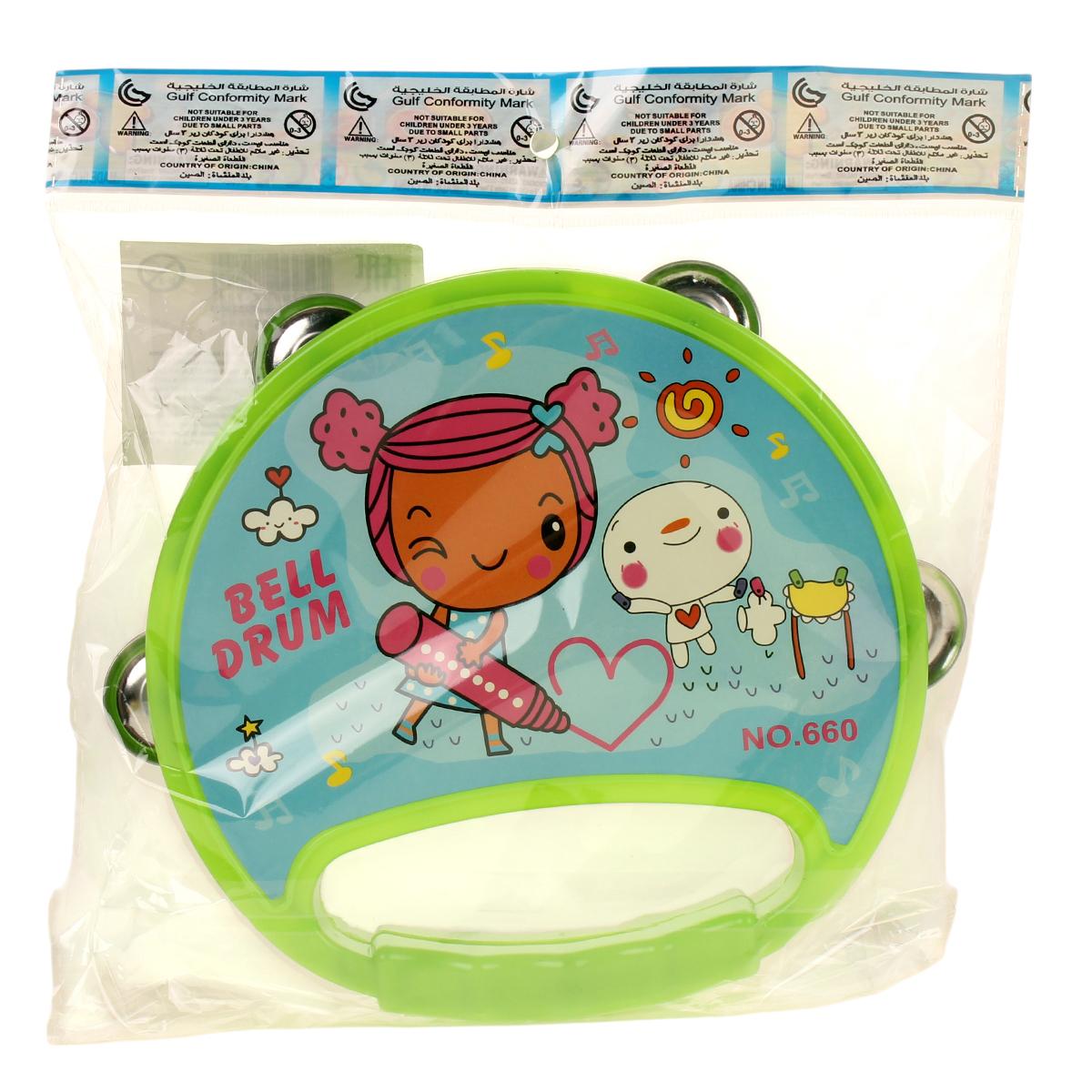 Бубен детский 'BELL DRUM NO.660' 16см, зеленый, пластик/металл