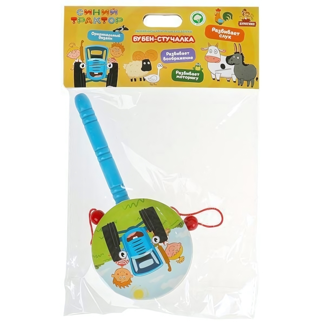 Деревянный бубен-стучалка 'Синий Трактор' — это не просто игрушка, а первый музыкальный инструмент вашего ребенка. Яркий дизайн и удобная форма привлекут внимание малыша и подарят незабываемые моменты творчества.