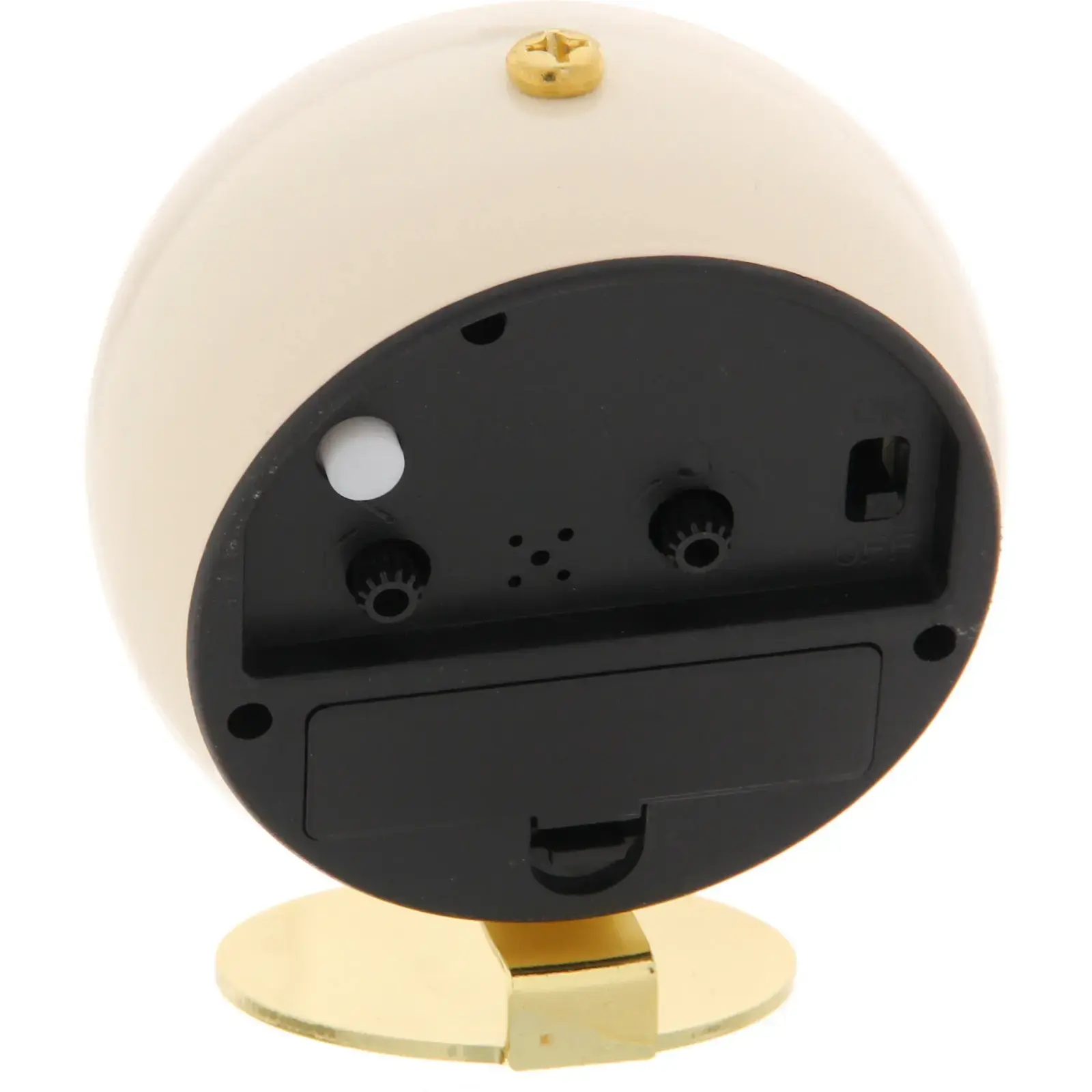 Будильник выполнен в сливочном цвете с золотыми элементами, что придаёт ему элегантный вид. Корпус изготовлен из металла и пластика, что обеспечивает долговечность и надежность. Он станет не только функциональным предметом, но и стильным акцентом в вашем доме.