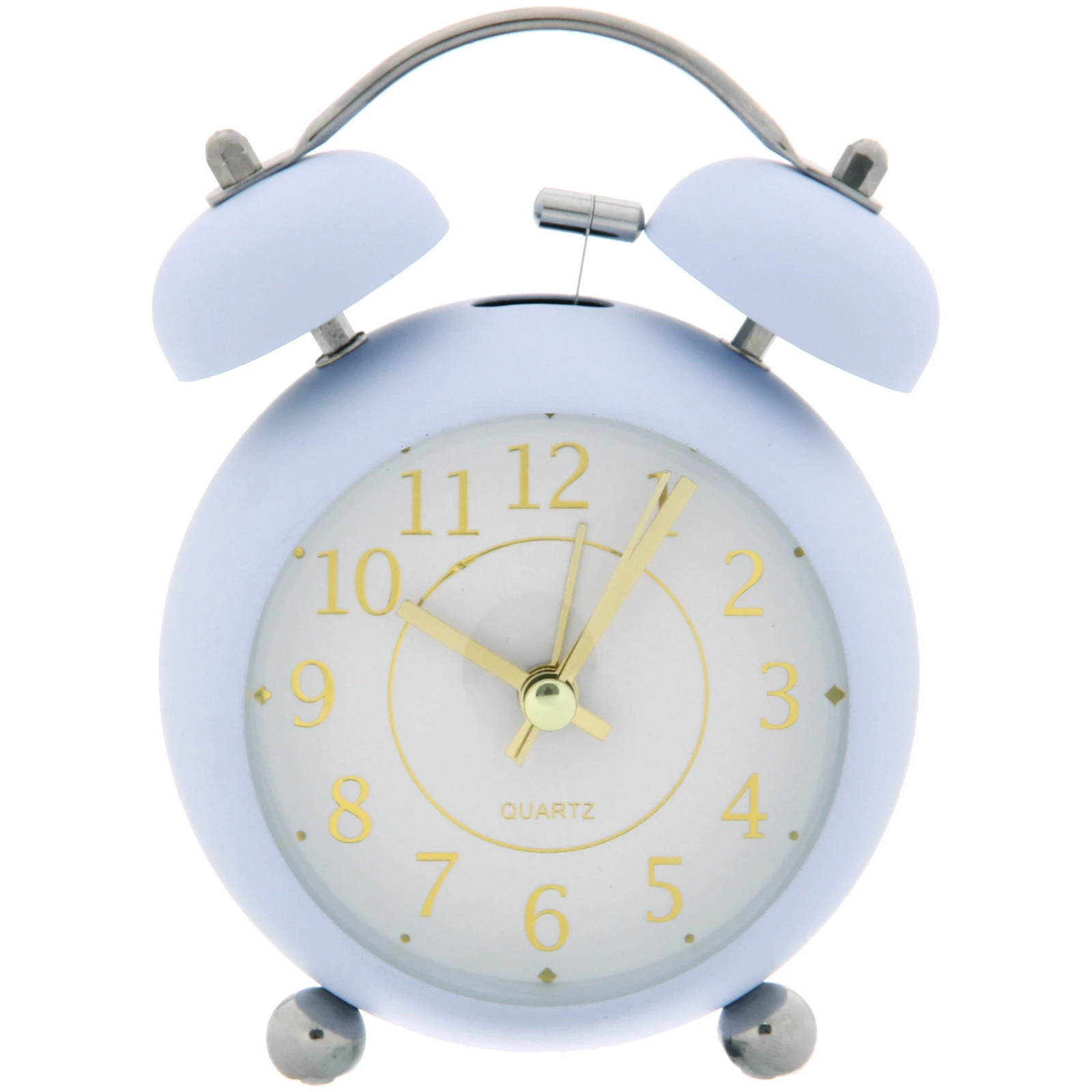 Будильник имеет компактные размеры — примерно 8.5 см в ширину и 4.5 см в высоту (без учёта ручки). Корпус выполнен в нежном голубом цвете, который гармонично сочетается с серебристыми элементами (ручка, ножки, механизм) и жёлтыми деталями циферблата. Товар поставляется в индивидуальной картонной упаковке. Этот будильник — идеальный выбор для тех, кто ценит точность, надёжность и эстетику в повседневных вещах.
