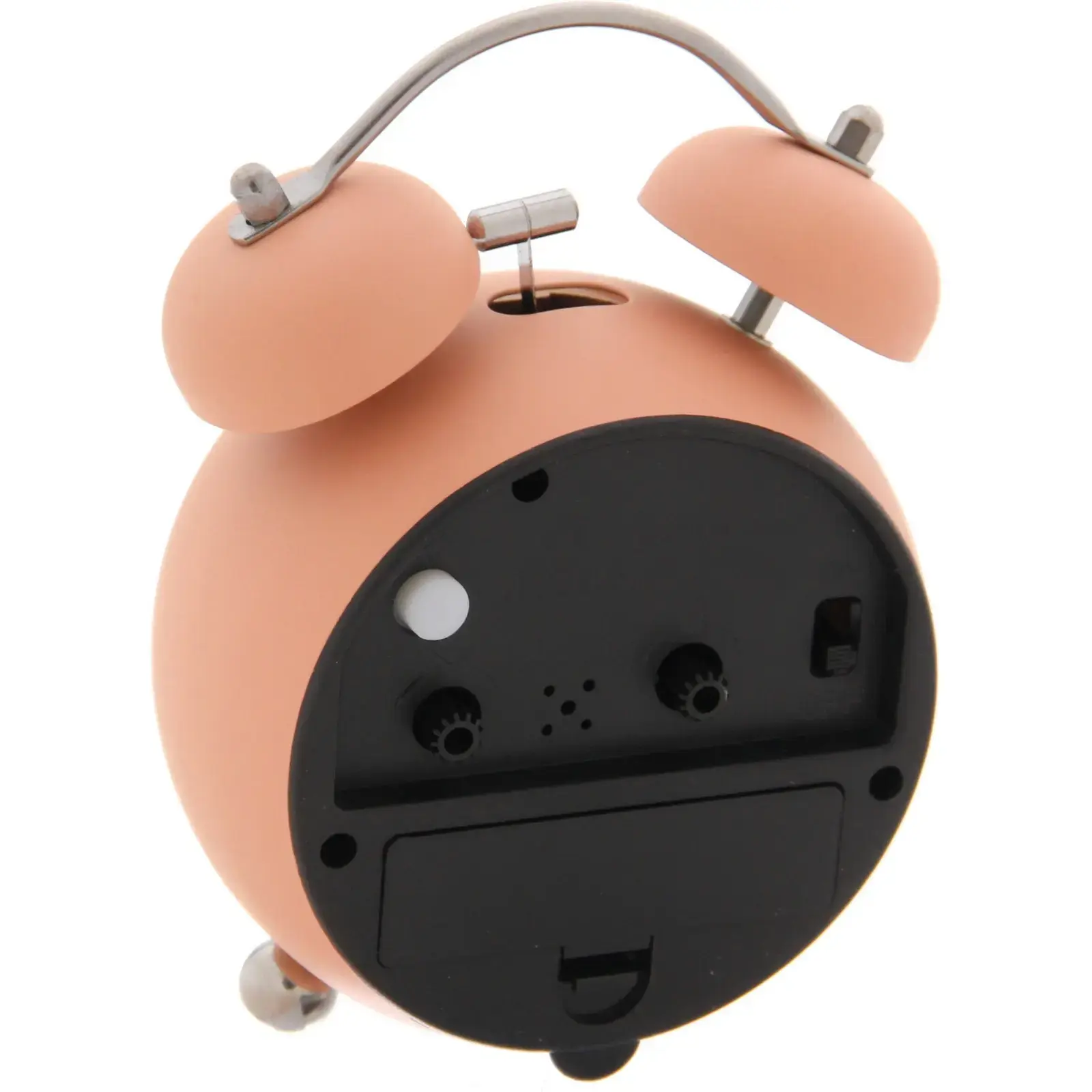 Компактные размеры 8,5х4,5 см позволяют разместить будильник на прикроватной тумбе, рабочем столе или полке. Гибридная конструкция из металла и пластика обеспечивает долговечность при ежедневном использовании. Отсек для батареек типа AA скрыт в задней части корпуса.