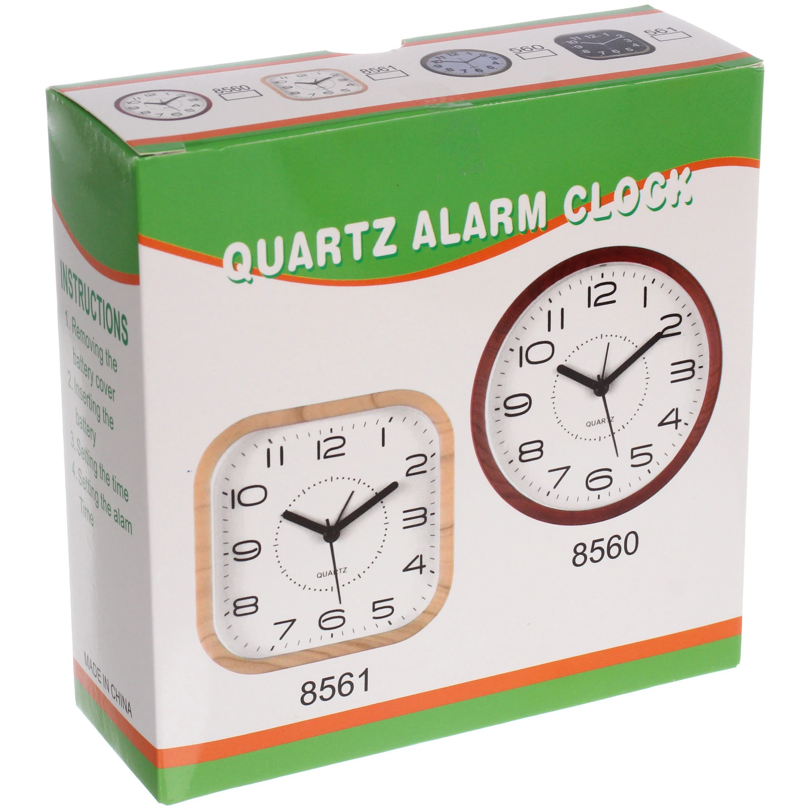 Будильник работает от батарейки (тип батарейки уточняйте в технической спецификации). Механизм оснащён тремя стрелками: часовой, минутной и секундной. В нижней части циферблата указан тип механизма – QUARTZ. Обратите внимание: на фотографиях представлены оба варианта расцветки, но конкретный цвет корпуса (светлый или тёмный) определяется случайным образом при комплектации заказа.