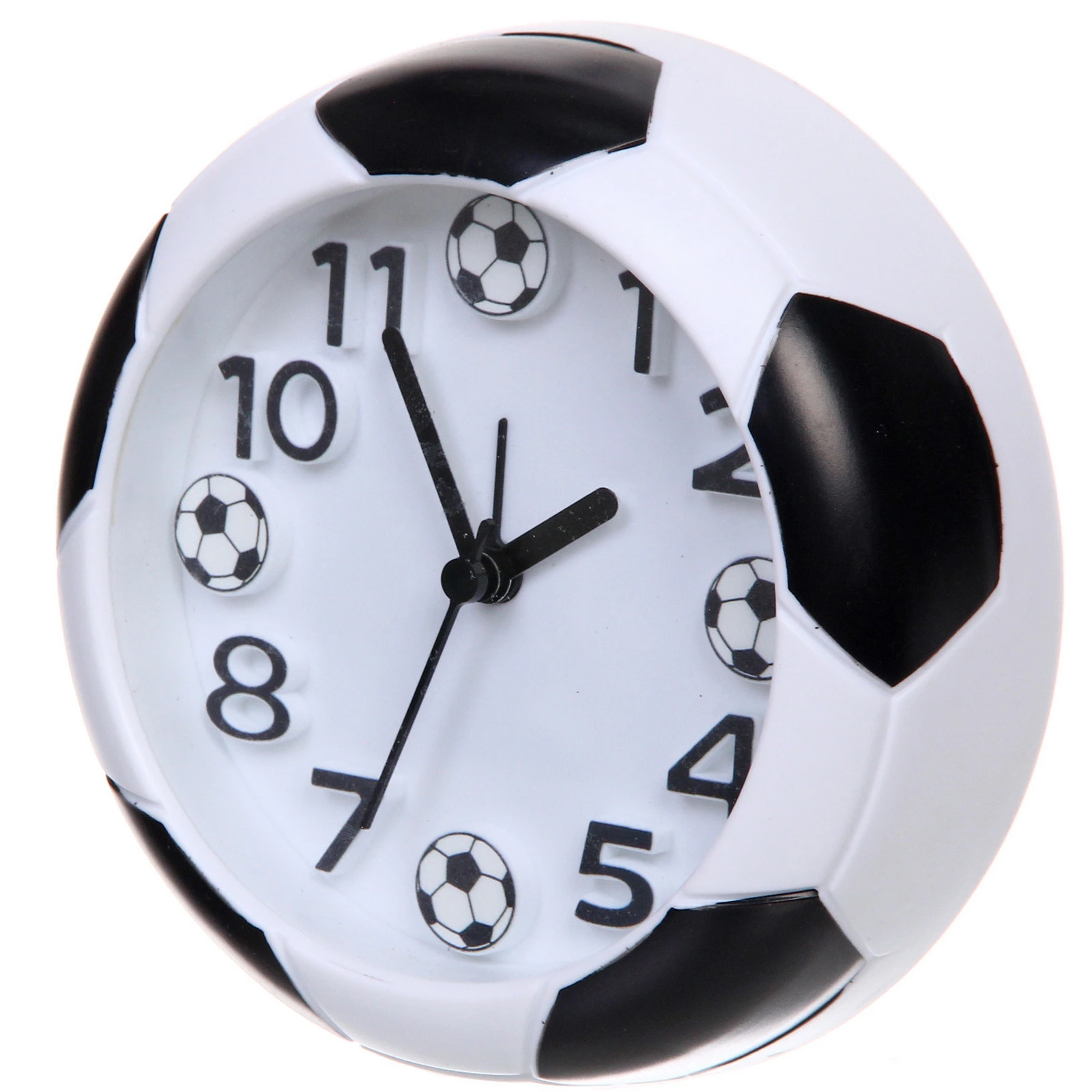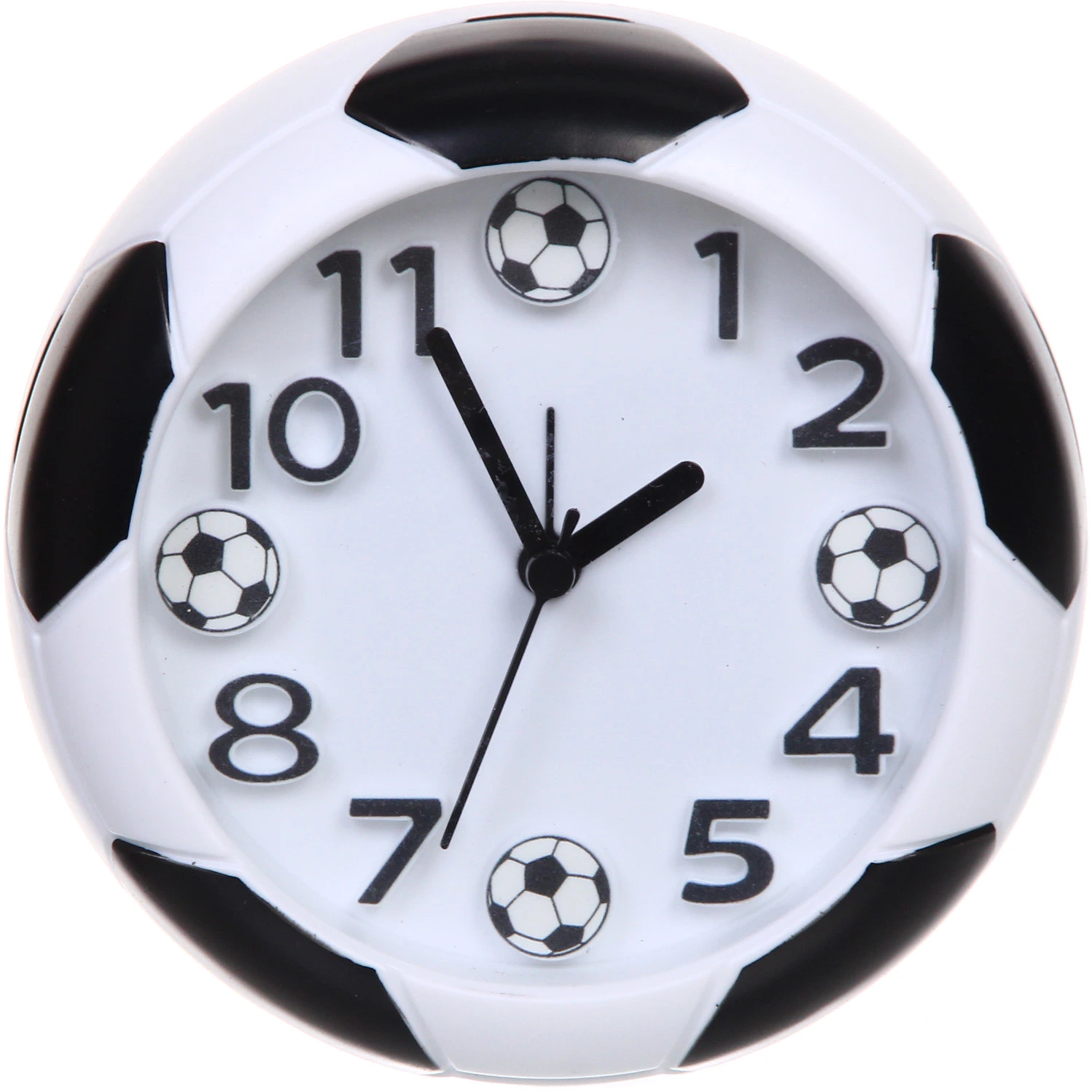 Изделие имеет шарообразную форму с контрастными черными элементами. Три черные стрелки (часовая, минутная и секундная) обеспечивают отличную видимость. Продуманная конструкция и качественные материалы делают использование аксессуара максимально комфортным. Такой будильник станет отличным решением для тех, кто ищет полезный и запоминающийся подарок для ребенка или взрослого фаната футбола. Подарите радость пробуждения и заряд энергии для новых побед!