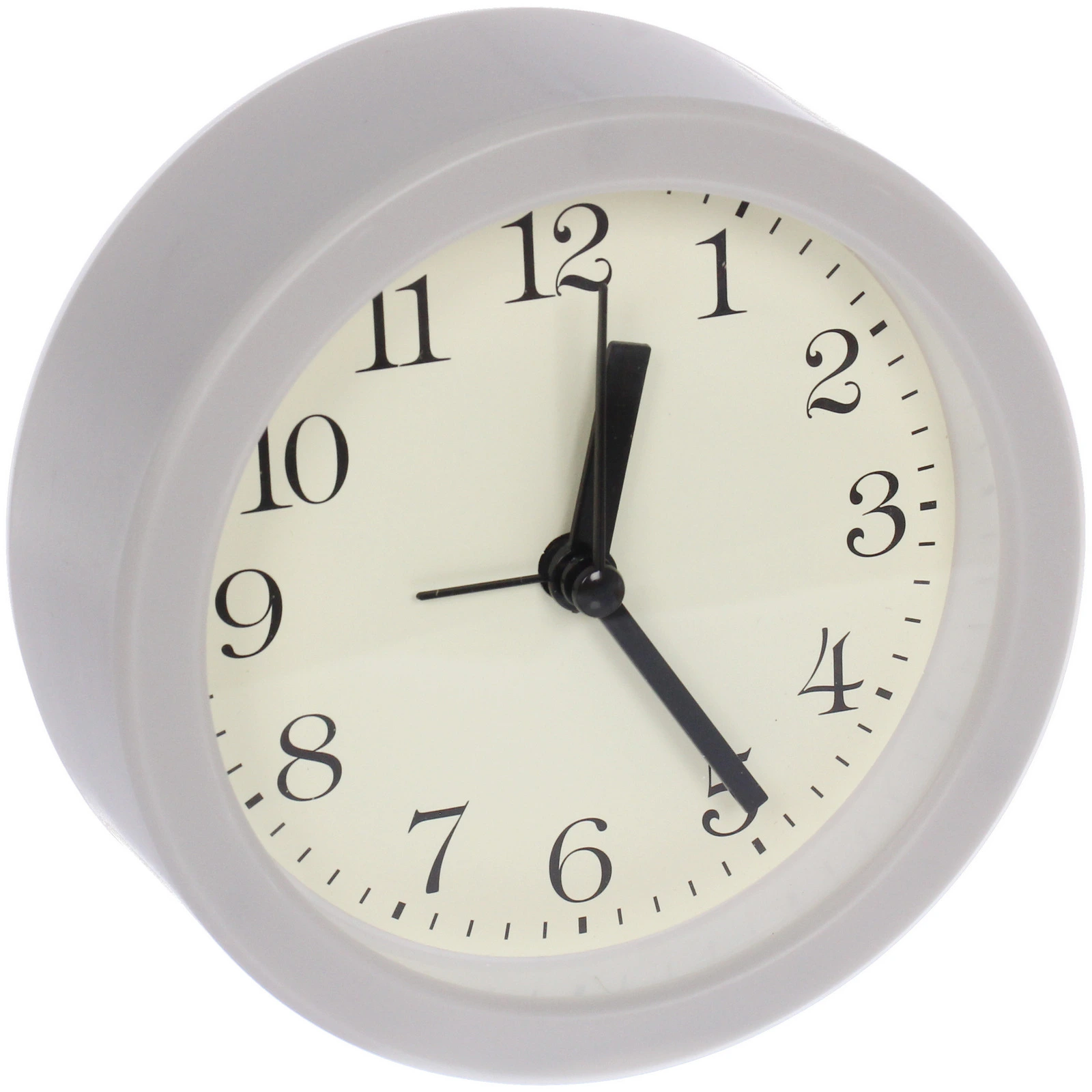 - Классический аналоговый циферблат. Крупные арабские цифры и три чёткие стрелки позволяют мгновенно определить время даже с расстояния. Светлый фон циферблата создаёт идеальный контраст с чёрными метками.